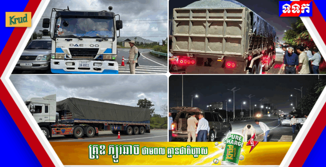 – ចំណុចគ.មលេខ១២៦ ស្រុកកំពង់សីលា ត្រួតពិនិត្យយានយន្តចំនួន០២គ្រឿង មានបិទឡូហ្គោ HC ផ្ទុកទម្ងន់សរុបចន្លោះពី ៥៩តោនដល់៧៦តោន លើសទម្ងន់អនុញ្ញាតចន្លោះពី១៩តោនដល់៣១តោន