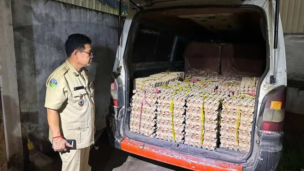រថយន្តដឹកពងមាន់ ១ម៉ឺន៥ពាន់គ្រាប់ នាំចូលពីវៀតណាមខុសច្បាប់ ត្រូវសមត្ថកិច្ចឃាត់បាននៅខណ្ឌច្បារអំពៅ