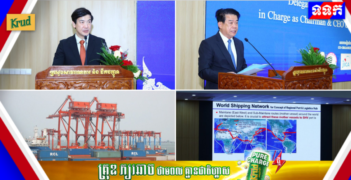 ខេត្តព្រះសីហនុ ៖ សិក្ខាសាលាផ្សព្វផ្សាយ ស្ដីពី “គម្រោងអភិវឌ្ឍន៍ផែនការមេដើម្បីប្រែក្លាយកំពង់ផែក្រុងព្រះសីហនុ ទៅជាកំពង់ផែ និងមជ្ឈមណ្ឌលឡូជីស្ទីក ថ្នាក់តំបន់” ជាមយមួយលោក NAGASE Kensuke អនុប្រធានបេសកកម្មនៃស្ថានទូតជប៉ុនប្រចាំកម្ពុជា។ រាជរដ្ឋាភិបាលកម្ពុជា ចាប់ផ្ដើមផ្សព្វផ្សាយគម្រោងអភិវឌ្ឍន៍ផែនការមេដើម្បីប្រែក្លាយកំពង់ផែក្រុងព្រះសីហនុ ទៅជាកំពង់ផែ និងមជ្ឈមណ្ឌលឡូជីស្ទីកថ្នាក់តំបន់ ប៉ូលអភិវឌ្ឍន៍ជាតិ និងជាគោលដៅទេសចរណ៍ឆ្នេរសមុទ្រ។