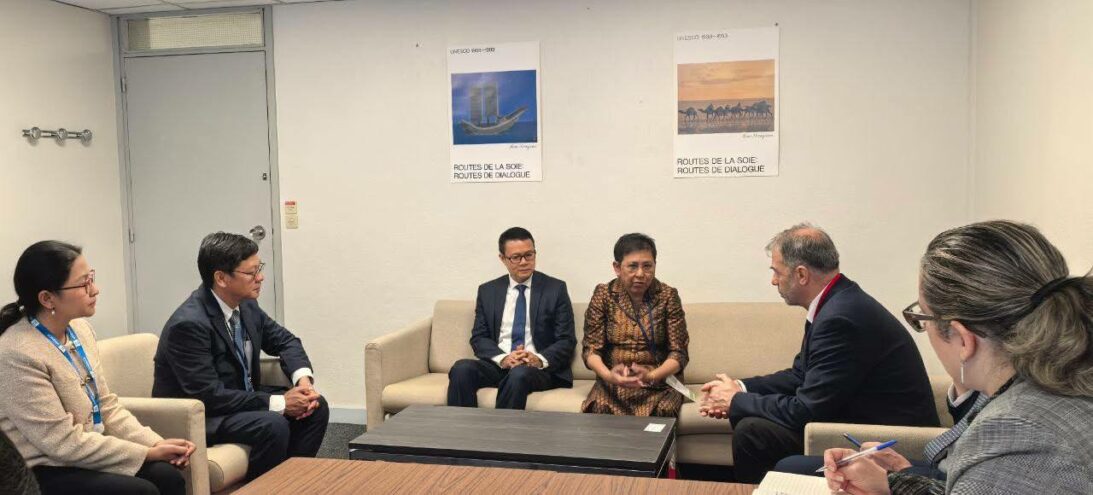នៅរសៀលថ្ងៃទី៨ ខែកក្កដា ឆ្នាំ២០២៥ នាទីស្នាក់ការកណ្តាលនៃអង្គការយូណេស្កូ ទីក្រុងប៉ារីស ប្រទេសបារាំង លោកជំទាវបណ្ឌិតសភាចារ្យ ភឿង សកុណា រដ្ឋមន្ត្រីក្រសួងវប្បធម៌ និងវិចិត្រសិល្បៈ ប្រធានគណៈប្រតិភូរាជរដ្ឋាភិបាលកម្ពុជាចូលរួមកិច្ចប្រជុំលើកទី៤៧នៃគណៈកម្មាធិការបេតិកភណ្ឌពិភពលោក បានចូលជួបសម្តែងការគួរសមជួបពិភាក្សាជាមួយឯកឧត្តម សាស្ត្រាចារ្យ  Nikolay Nenov ដើម្បីបង្ហាញអំពីបំណងល្អរបស់កម្ពុជាក្នុងការចូលរួមចំណែកលើកកម្ពស់តួនាទីរបស់គណ:កម្មាធិការបេតិកភណ្ឌពិភពលោក ក៏ដូចជាការជំរុញលើកកម្ពស់កិច្ចសហប្រតិបត្តិការទ្វេរភាគីលើផ្នែកវប្បធម៌ និងបេតិកភណ្ឌ។