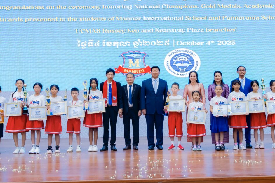 លោកជំទាវបណ្ឌិត ពេជ ចន្ទមុន្នី ហ៊ុនម៉ាណែត នៅរសៀលថ្ងៃទី៤ខែតុលានេះ បានអញ្ជើញជាភ្ញៀវកិត្តិយសក្នុងពិធីប្រគល់ពានរង្វាន់ មេដាយមាស វិញ្ញាបនបត្របញ្ជាក់ការសិក្សា និងលិខិតសរសើរ ដល់សិស្ស UCMAS (យូស៊ីម៉ាស) សាខាកៀនស្វាយផ្លាហ្សា និងសាខាឬស្សីកែវ។