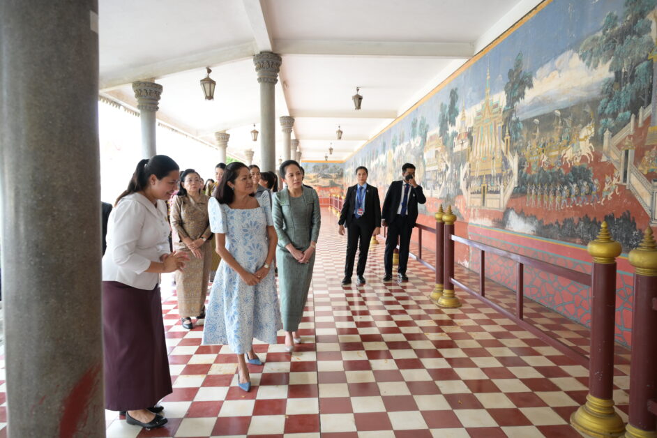 ក្នុងឱកាសអញ្ជើញទស្សនាក្នុងព្រះបរមរាជវាំងនាឱកាសនេះ លោកជំទាវបណ្ឌិត ពេជ ចន្ទមុន្នី ហ៊ុន ម៉ាណែត និងលោកជំទាវទី១នៃសាធារណរដ្ឋហ្វីលីពីន ព្រមទាំងគណៈប្រតិភូអមដំណើរ បានអញ្ជើញទស្សនាព្រះទីនាំទេវាវិនិច្ឆ័យ ហោព្រះខ័ន ផ្ទាំងគំនូរដែលបង្ហាញអំពីរឿងរាមកេរ្តិ៍ និងព្រះវិហារព្រះកែវមរកត។