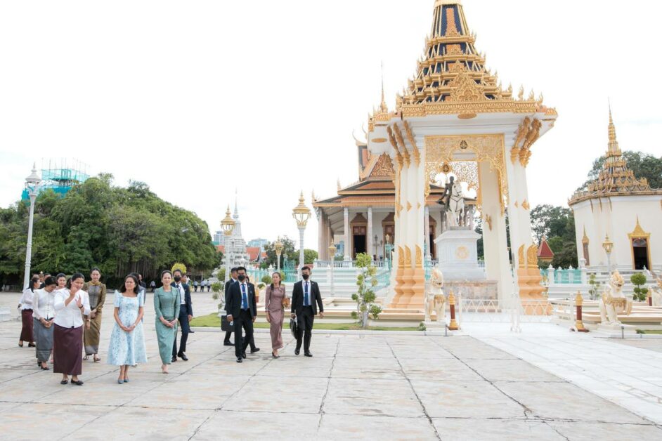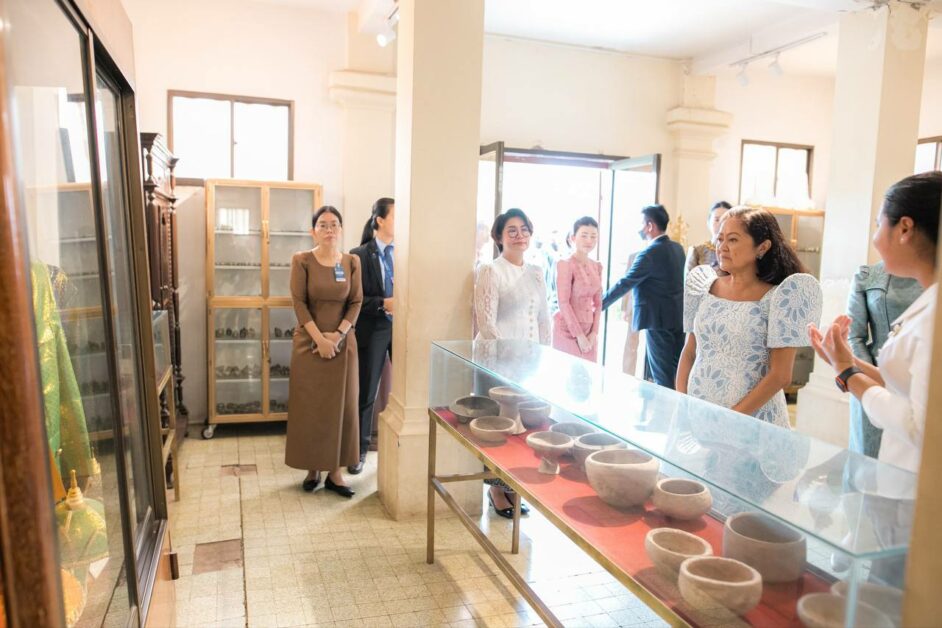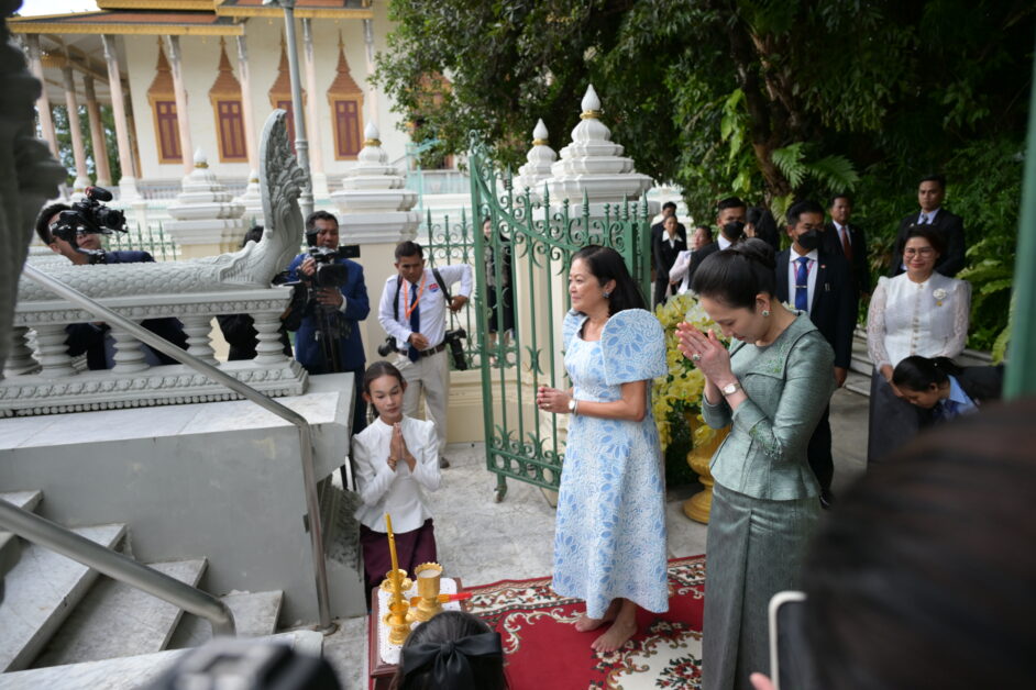 ដោយបានទទួលការប្រោសព្រះរាជទានដ៏ខ្ពង់ខ្ពស់ពីព្រះករុណាជាអម្ចាស់ជីវិតលើត្បូង ព្រះបាទសម្តេចព្រះបរមនាថ ព្រះមហាក្សត្រនៃព្រះរាជាណាចក្រកម្ពុជា ជាទីគោរពសក្ការៈដ៏ខ្ពង់ខ្ពស់បំផុត នៅរសៀលថ្ងៃទី០៨ ខែកញ្ញា ឆ្នាំ២០២៥ លោកជំទាវបណ្ឌិត ពេជ ចន្ទមុន្នី ហ៊ុន ម៉ាណែត បានអញ្ជើញទទួលស្វាគមន៍ការអញ្ជើញមកទស្សនាព្រះបរមរាជវាំងរបស់លោកជំទាវ លូអ៊ីស អារ៉ាណេតា ម៉ាកូស និងគណៈប្រតិភូជាន់ខ្ពស់នៃសាធារណរដ្ឋហ្វីលីពីន ក្នុងឱកាសលោកជំទាវទី១ បានអញ្ជើញអមដំណើរឯកឧត្តម ហ្វឺឌីណាន់ រ៉ូម៉ូលដេស ម៉ាកូស ជូញៀ ប្រធានាធិបតីនៃសាធារណរដ្ឋហ្វីលីពីន មកបំពេញដំណើរទស្សនកិច្ចផ្លូវរដ្ឋ នៅព្រះរាជាណាចក្រកម្ពុជា។
