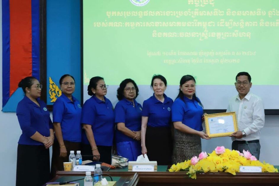 លោកជំទាវ គឹម សុភ័ក្រ អញ្ជើញបិទកិច្ចប្រជុំបូកសរុបលទ្ធផលការងារប្រចាំត្រីមាសទី២ និងឆមាសទី១ ឆ្នាំ២០២៥ របស់គណ:កម្មការសាខាសមាគមនារីកម្ពុជា ដើម្បីសន្តិភាព និងអភិវឌ្ឍខេត្តព្រះសីហនុ