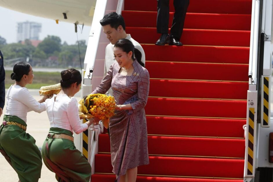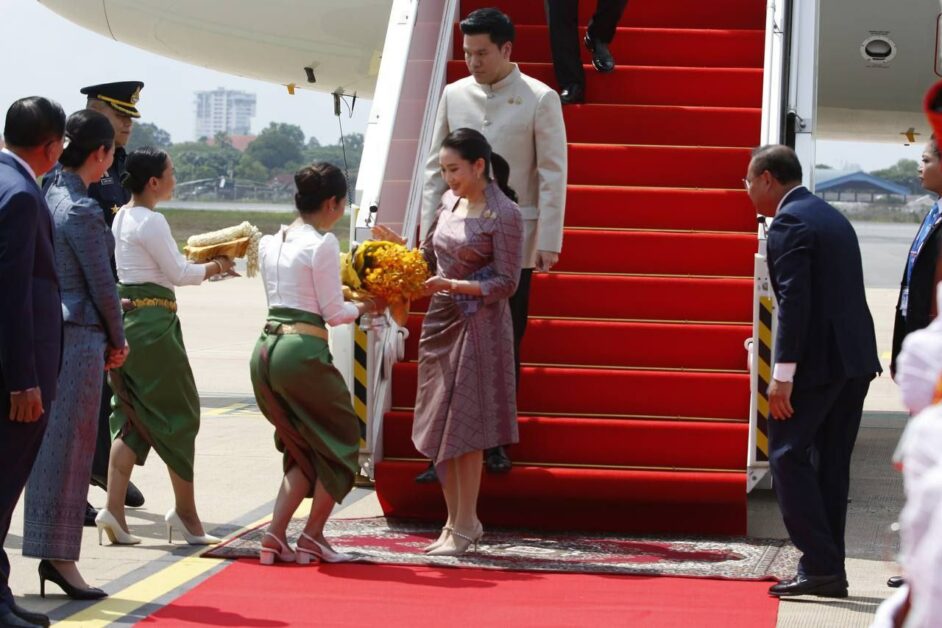 លោកជំទាវ ផែថងថាន ស៊ីណាវ៉ាត្រ នាយករដ្ឋមន្រ្តីថៃ ដឹកនាំគណៈប្រតិភូជាន់ខ្ពស់មកដល់ព្រះរាជាណាចក្រកម្ពុជា ប្រកបដោយសុវត្ថិភាព