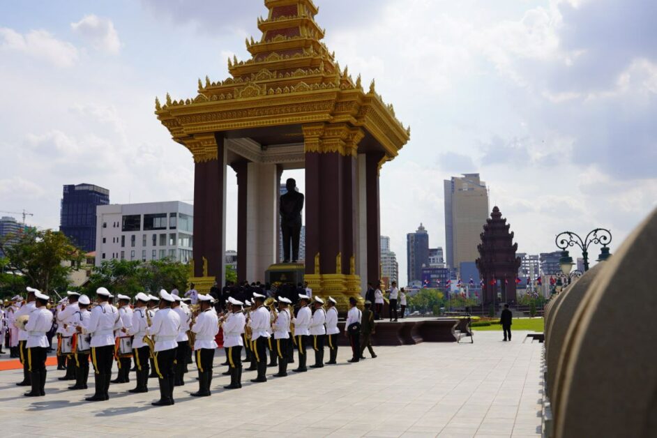 ក្នុងពិធីដាក់កម្រងផ្កាគោរពវិញ្ញាណក្ខន្ធនៅវិមានឯករាជ្យ ក្នុងនោះក៏មានអញ្ជើញការអមដំណើរ និងទទួលបដិសណ្ឋារកិច្ចពី ឯកឧត្តម ឧត្តមសេនីយ៍ឯក ពូ សាប៊ុតឌី មេបញ្ជាការរងកងទ័ពជើងគោក និងជាមេបញ្ជាការយោធភូមិភាគពិសេស ឯកឧត្តម ឈិន កេតនា ឧបនាយករដ្ឋមន្ត្រី អនុប្រធានអចិន្ត្រៃយ៍និងជាអគ្គលេខាធិការនៃគណៈកម្មាធិការជាតិរៀបចំបុណ្យជាតិ-អន្តរជាតិ ព្រមទាំងថ្នាក់ដឹកនាំ និងអ្នកមុខអ្នកការជាច្រើនរូបទៀត។