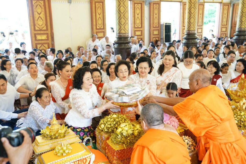 លោកជំទាវ សូ ភត្រ្តា ចាយបូរិន អញ្ជើញចូលរួមអង្គកឋិនទានមហាសាមគ្គី ដើម្បីវេរថ្វាយនិងប្រគេន សម្តេចជាអម្ចាស់ និង ព្រះមន្រ្តីសង្ឃ ដែលគង់ចាំព្រះវស្សាអស់កាលត្រីមាស ដើម្បីប្រមូលបច្ច័យកសាងសមិទ្ធផលនានា ទុកជាគរុភណ្ឌក្នុងពុទ្ធសីមា វត្តមុនីសុវណ្ណ (ហៅវត្តចំពុះក្អែក) ដែលស្ថិតនៅក្នុងសង្កាត់ព្រែកថ្មី ខណ្ឌច្បារអំពៅ រាជធានីភ្នំពេញ នាព្រឹកថ្ងៃទី១៩ ខែតុលា ឆ្នាំ២០២៥។