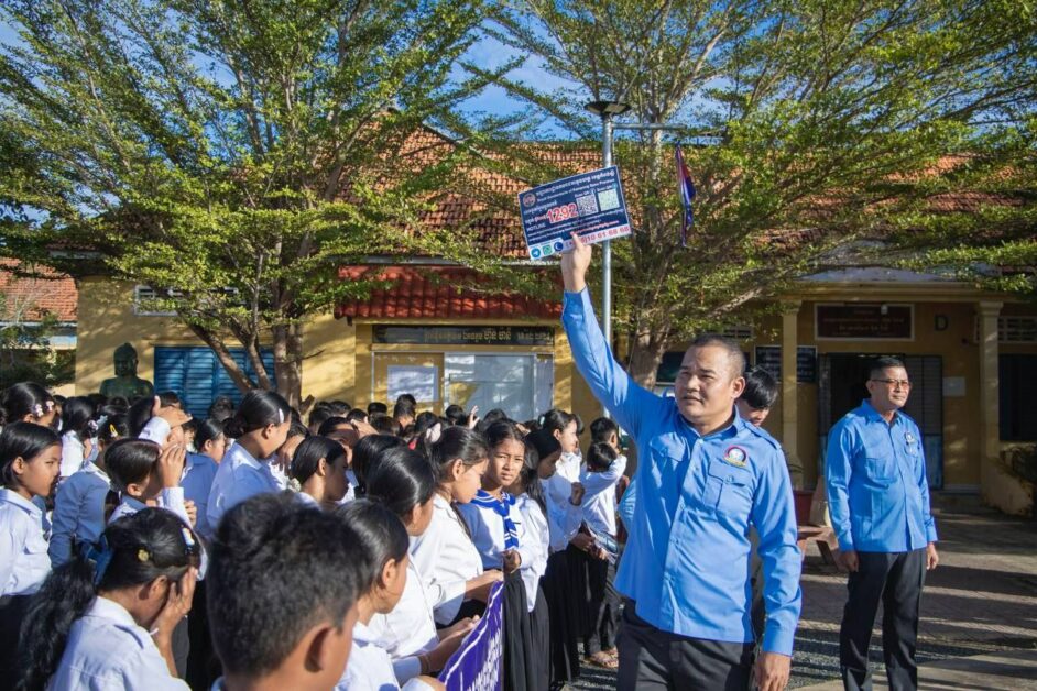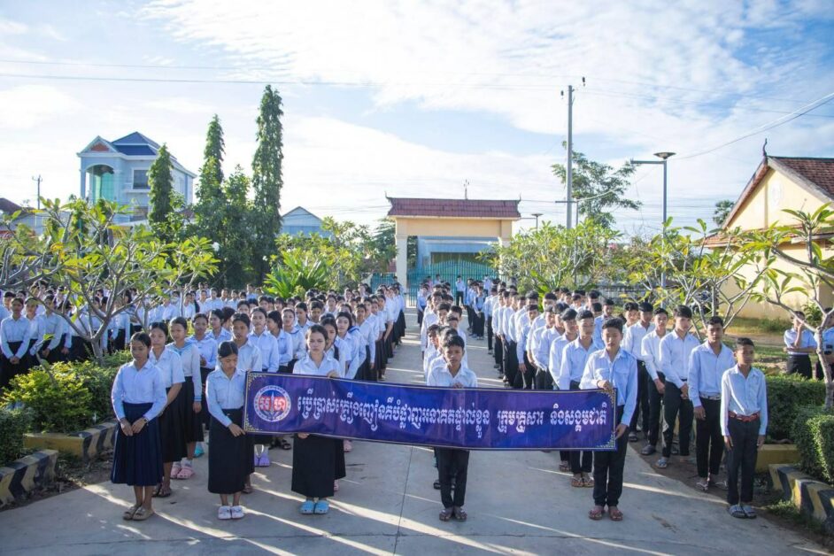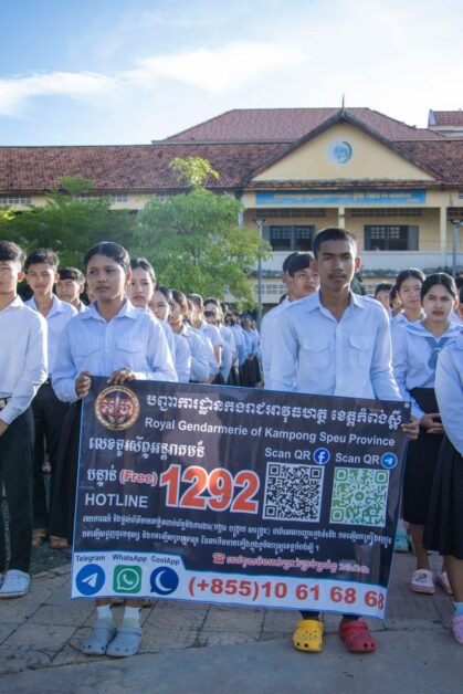 លោកឧត្តមសេនីយ៍ត្រី ម៉េង ស្រ៊ុន ដាក់បទបញ្ជាឲ្យកម្លាំងកងរាជអាវុធហត្ថខេត្តកំពង់ស្ពឺ បន្តចុះផ្សព្វផ្សាយអប់រំអំពីផលប៉ះពាល់នៃគ្រឿងញៀន ដើម្បីលើកកម្ពស់សហគមន៍គ្មានគ្រឿងញៀន(បារីអេឡិចត្រូនិច) និងក្មេងទំនើង នៅសាលាវិទ្យាល័យ ហ៊ុន សែន សំរោង(រួមគ្នាគិត! រួមគ្នាធ្វើ! រួមគ្នាទទួលខុសត្រូវ! ដើម្បីខេត្តកំពង់ស្ពឺយើង!)