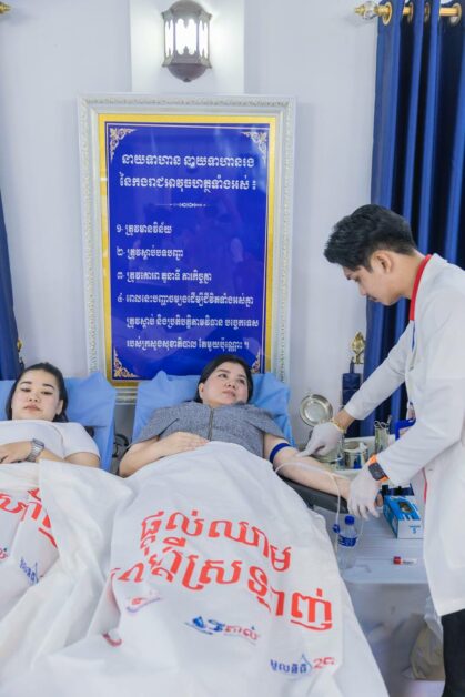 ក្នុងកម្មវិធីបរិច្ចាកឈាមដោយស្ម័កចិត្តនេះដែរ ប្រព្រឹត្តទៅដោយមានការសហការពីក្រុមគ្រូពេទ្យបង្អែកខេត្តកំពង់ស្ពឺ ដែលដឹកនាំដោយ លោកវិជ្ជបណ្ឌិត សុខ ប៉ូ នាយកមជ្ឍមណ្ឌលជាតិផ្តល់ឈាម និងលោកវិជ្ជបណ្ឌិត ឡុង វិសិទ្ធ ប្រធានមន្ទីរពេទ្យបង្អែកខេត្តកំពង់ស្ពឺ ដោយមានអ្នកចូលរួមបរិច្ចាកឈាមសរុបចំនួន១២៥នាក់។