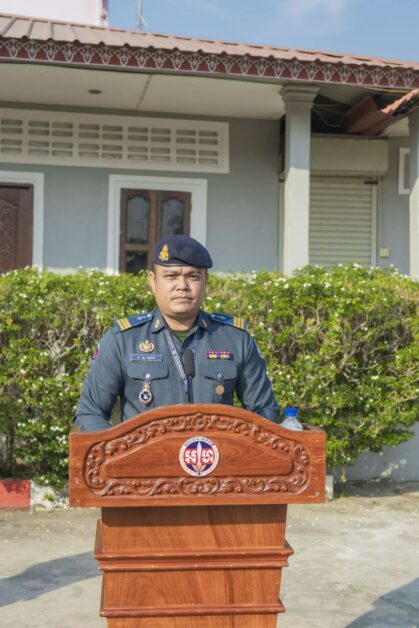 នាឱកាសនោះ លោកស្រី គា សុភូ អភិបាលរងខេត្តកំពង់ស្ពឺ ក៏បានមានប្រសាសន៏សំណេះសំណាលជាមួយយោធិននៃកងរាជអាវុធហត្ថទើបជ្រើសរើសថ្មី (ជាប់ជាស្ថាពរ) ទាំងអស់ រួមនិងក្រុមគ្រួសារ មាតាបិតា អាណាព្យាបាលយោធិនជ្រើសរើសថ្មីដែលបានចូលរួមក្នុងពិធី ជាពិសេសក៏បានពាំនាំនូវពាក្យផ្តាំផ្ញើរពីសំណាក់ ឯកឧត្តមបណ្ឌិត ជាម ចន្ទ័សោភ័ណ អភិបាល នៃគណៈអភិបាលខេត្តកំពង់ស្ពឺ ដល់យោធិនទើបជ្រើសរើសថ្មីឲ្យខិតខំយកចិត្តទុកដាក់រៀនសូត្រ បំពេញតួនាទី ភារកិច្ច បេសកកម្មក្នុងការហ្វឹកហ្វឺនឲ្យទទួលបានជោគជ័យ និងត្រូវគោរពច្បាប់លក្ខន្តិកៈនៃកងយោធពលខេមរភូមិន្ទឲ្យបានល្អដើម្បីអភិវឌ្ឍន៍ខ្លួន ឲ្យក្លាយជាធនធានល្អ សម្រាប់សង្គមជាតិនៃយើង។