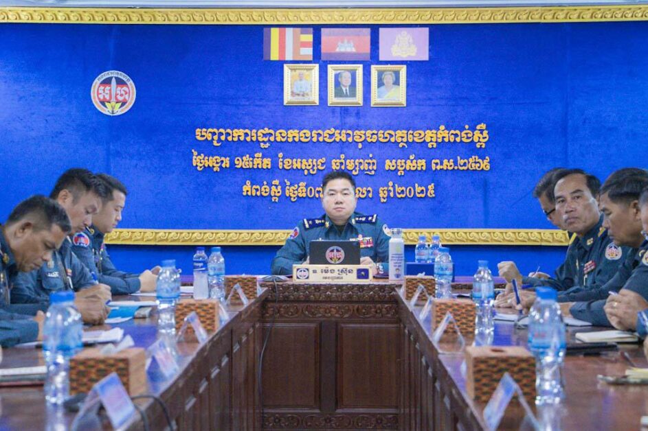 កំពង់ស្ពឺ ៖ នាថ្ងៃអង្គារ ទី០៧ ខែតុលា ឆ្នាំ២០២៥ លោកឧត្តមសេនីយ៍ត្រី ម៉េង ស្រ៊ុន មេបញ្ជាការ កងរាជអាវុធហត្ថខេត្តកំពង់ស្ពឺ បានអញ្ជើញដឹកនាំកម្លាំង ចូលរួមស្តាប់កិច្ចប្រជុំបូកសរុបការងារផែនប្រឡងប្រណាំងទី២ ឆ្នាំ២០២៥ និងលើកទិសដៅអនុវត្តការងារ ឆ្នាំ២០២៦ ក្រោមអធិបតីភាព លោកឧត្តមសេនីយ៍ទោ ស សំបូរធន មេបញ្ជាការរង និងជានាយសេនាធិការកងរាជអាវុធហត្ថលើផ្ទៃប្រទេស អនុប្រធានក្រុមការងារប្រឡងប្រណាំង កងរាជអាវុធហត្ថ និងជាប្រធានផែនប្រឡងប្រណាំងទី២ កងរាជអាវុធហត្ថ តាមរយៈវីដេអូ Conference ស្ថិតនៅសាលប្រជុំ បញ្ជាការដ្ឋានកងរាជអាវុធហត្ថ ខេត្តកំពង់ស្ពឺ។