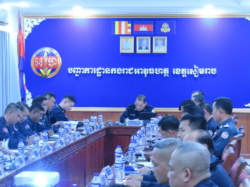 ខេត្តសៀមរាប ៖ រសៀលថ្ងៃសៅរ៏ ទី១២ ខែមេសា ឆ្នាំ២០២៥ នៅសាលប្រជុំបញ្ជាការដ្ឋានកងរាជអាវុធហត្ថខេត្តសៀមរាប លោកឧត្តមសេនីយ៍ទោ ស សំបូរធន មេបញ្ជាការរង និងជានាយសេនាធិការកងរាជអាវុធហត្ថលើផ្ទៃប្រទេស បានអញ្ជើញជាអធិបតីដឹកនាំអង្គប្រជុំត្រួតពិនិត្យចុងក្រោយផែនការការពារសន្តិសុខ រក្សាសណ្តាប់ធ្នាប់ និងសង្ក្រោះបន្ទាន់ សម្រាប់ព្រះរាជពិធីបួងសួងចម្រើនសេចក្តីសុខ ជូនដល់ព្រះរាជាណាចក្រកម្ពុជា និងព្រឹត្តិការណ៍អង្គរសង្ក្រាន្ត ឆ្នាំម្សាញ់ សប្តស័ក ព.ស.២៥៦៩ គ.ស.២០២៥ នៅខេត្តសៀមរាប នៅសាលប្រជុំបញ្ជាការដ្ឋានកងរាជអាវុធហត្ថខេត្តសៀមរាប។