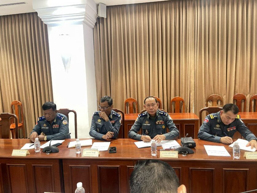 រាជធានីភ្នំពេញ ៖ ព្រឹកថ្ងៃចន្ទ័ ទី០៦ ខែតុលា ឆ្នាំ២០២៥ ដោយអនុវត្តបទបញ្ជាឯកឧត្តម នាយឧត្តមសេនីយ៍ សៅ សុខា អគ្គមេបញ្ជាការរង មេបញ្ជាការកងរាជអាវុធហត្ថលើផ្ទៃប្រទេស នៅសាលប្រជុំជាន់ផ្ទាល់ដី អគារសេនាធិការដ្ឋានកងរាជអាវុធហត្ថលើផ្ទៃប្រទេស លោកឧត្តមសេនីយ៍ទោ ស សំបូរធន មេបញ្ជាការរង និងជានាយសេនាធិការកងរាជអាវុធហត្ថលើផ្ទៃប្រទេស បានអញ្ជើញដឹកនាំកិច្ចប្រជុំផ្សព្វផ្សាយផែនការ ការពារសន្តិសុខ រក្សាសណ្ដាប់ធ្នាប់ និងសង្គ្រោះបន្ទាន់ ជូនឯកឧត្តមបណ្ឌិត Roosevelt Skerrit នាយករដ្ឋមន្ត្រីកុំមិនវែលដូមីនីក អញ្ជើញមកបំពេញទស្សនកិច្ចផ្លូវការ នៅព្រះរាជាណាចក្រកម្ពុជា។ ដំណើរបំពេញទស្សនកិច្ចរបស់គណៈប្រតិភូក្រុមការងារកងស្វ័យការពារជើងគោកជប៉ុន គណៈប្រតិភូកងទ័ពលម្ហអាកាសរុស្សី និងការចូលសំចតរបស់នាវាកងទ័ពជើងទឹកអូស្ត្រាលី HMAS Ballarat នាវាកងទ័ពជើងទឹកចិន PLAN 83 និងPLAN 988។