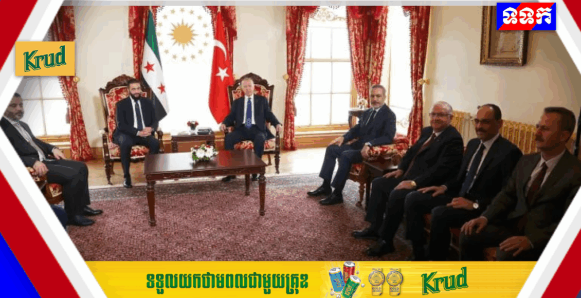 ព័ត៌មានជាតិ លោក al-Sharaa ជួបជាមួយលោក Erdogan ខណៈទណ្ឌកម្មលើស៊ីរីត្រូវបានលើកលែង ដោយ វិចិត្រ ចេញផ្សាយ ថ្ងៃទី 25 ខែ ឧសភា ឆ្នាំ 2025 549 -ប្រធានាធិបតីបណ្តោះអាសន្នស៊ីរី Ahmed al-Sharaa បានជួបជាមួយប្រធានាធិបតី Recep Tayyip Erdogan និងក្រុមមន្ត្រីជាន់ខ្ពស់តួកគីនៅក្នុងទីក្រុងអ៊ីស្តានប៊ុល ប្រទេសតួកគី ខណៈបស្ចិមប្រទេសដកទណ្ឌកម្មពីស៊ីរី៕ ប្រភព៖ Al Jazeera ប្រែសម្រួលដោយ ឌឿង សាវតា 549