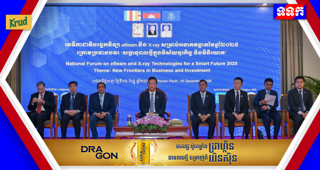 វិទ្យាស្ថានជាតិវិទ្យាសាស្ត្រ បច្ចេកវិទ្យា និងនវានុវត្តន៍ សហការជាមួយទីភ្នាក់ងារថាមពលបរមាណូអន្តរជាតិ (IAEA) និងសាកលវិទ្យាល័យ Texas A&M សហរដ្ឋអាមេរិក បានរៀបចំវេទិកាជាតិស្តីពី “បច្ចេកវិទ្យាប្រព្រឹត្តកម្មវិទ្យុសកម្ម eBeam និង X-ray សម្រាប់អនាគតឆ្លាតវៃ៖ សក្តានុពលថ្មីក្នុងវិស័យធុរកិច្ច និងវិនិយោគនៅកម្ពុជា”។