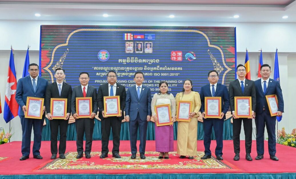 គម្រោងបណ្តុះបណ្តាលគ្រូបង្គោល និងអ្នកដឹកនាំសវនករសម្រាប់ប្រព័ន្ធគ្រប់គ្រងគុណភាព ISO 9001: 2015 ត្រូវបានបិទបញ្ចប់ដោយជោគជ័យ ដោយបានពង្រឹងសមត្ថភាពតំបន់ផ្នែកប្រព័ន្ធគ្រប់គ្រងគុណភាពនៅក្នុងប្រទេសកម្ពុជា ឡាវ និងមីយ៉ាន់ម៉ា ក្រោមក្របខ័ណ្ឌកិច្ចសហប្រតិបត្តិការមេគង្គ-ឡានឆាង។