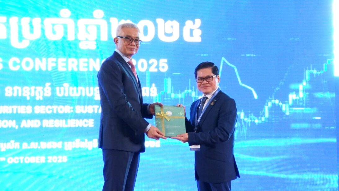 នៅសណ្ឋាគារសុខាភ្នំពេញ ព្រឹកថ្ងៃទី០៧ ខែតុលា ឆ្នាំ២០២៥ និយ័តករមូលបត្រកម្ពុជា រួមសហការជាមួយធនាគារអភិវឌ្ឍន៍អាសុី ADB រៀបចំ សន្និសីទមូលបត្រប្រចាំឆ្នាំ២០២៥ ក្រោមមូលបទស្តីពី “ការវិវត្តនៃវិស័យមូលបត្រ៖ ចីរភាព, នវានុវត្តន៍, បរិយាបន្ន និងភាពធន់” ដែលមានការអញ្ជើញជាធិបតីដោយឯកឧត្តមអគ្គបណ្ឌិតសភាចារ្យ អូន ព័ន្ធមុនីរ័ត្ន ឧបនាយក រដ្ឋមន្ត្រី រដ្ឋមន្ត្រីក្រសួងសេដ្ឋកិច្ចនិងហិរញ្ញវត្ថុ និងជាប្រធាន ក្រុមប្រឹក្សាអាជ្ញាធរសេវាហិរញ្ញវត្ថុមិនមែនធនាគារ ឯកឧត្តម ស៊ូ សុជាតិ ប្រតិភូរាជរដ្ឋាភិបាលទទួលបន្ទុកជា អគ្គនាយកនៃនិយ័តករមូលបត្រកម្ពុជា (ន.ម.ក.)។