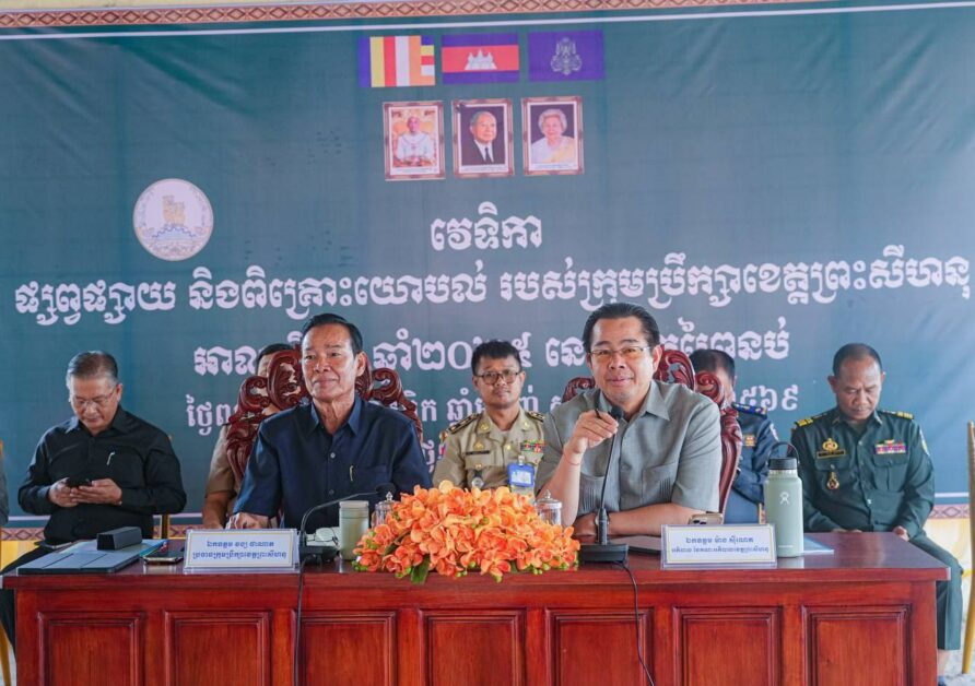 ឯកឧត្តម វង្ស ផាណាត ប្រធានក្រុមប្រឹក្សាខេត្ត និងឯកឧត្តម ម៉ាង ស៊ីណេត អភិបាល នៃគណៈអភិបាលខេត្តព្រះសីហនុ អញ្ជើញជាអធិបតីក្នុងវេទិការផ្សព្វផ្សាយ និងពិគ្រោះយោបល់ក្រុមប្រឹក្សាខេត្តព្រះសីហនុ អាណត្តិទី៤ ឆ្នាំ២០២៥ នៅបរិវេណវត្តសំរុង ឃុំសំរុង ស្រុកព្រៃនប់ ខេត្តព្រះសីហនុ ដោយមានការអញ្ជើញចូលរួមពីឯកឧត្តម លោកជំទាវ សមាជិក សមាជិកាក្រុមប្រឹក្សាខេត្ត លោកអភិបាលរងខេត្ត គណៈអភិបាលស្រុក ក្រុមប្រឹក្សាស្រុក ប្រធានមន្ទីរ អង្គភាព អង្គការសង្គមស៊ីវិល និងប្រជាពលរដ្ឋជាច្រើនរូបទៀត។