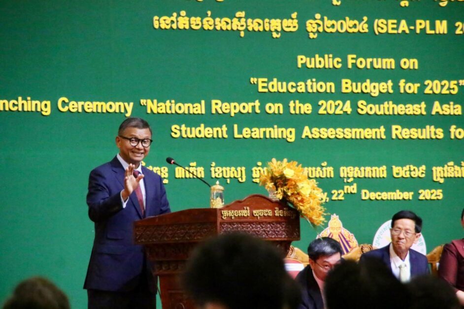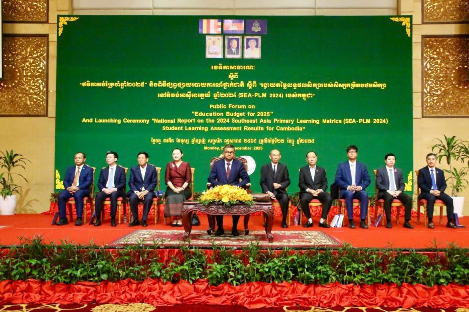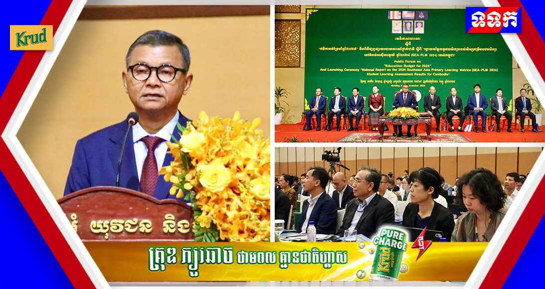 ក្រសួងអប់រំ យុវជន និងកីទ្បា នៅថ្ងៃទី២២ ខែធ្នូ ឆ្នាំ២០២៥ បានរៀបចំវេទិកាសាធារណៈស្តីពី “ថវិកាអប់រំប្រចាំឆ្នាំ២០២៥” និងពិធីផ្សព្វផ្សាយរបាយការណ៍ថ្នាក់ជាតិស្តីពី “រង្វាយតម្លៃលទ្ធផលសិក្សារបស់សិស្សកម្រិត បឋមសិក្សា នៅតំបន់អាស៊ីអាគ្នេយ៍ ឆ្នាំ២០២៤ (SEA-PLM 2024) របស់កម្ពុជា” ក្រោមអធិបតីភាដ៏ខ្ពង់ ឯកឧត្តមបណ្ឌិតសភាចារ្យ ហង់ជួន ណារ៉ុន ឧបនាយករដ្ឋមន្ត្រី រដ្ឋមន្ត្រីក្រសួងអប់រំ យុវជន និងកីឡា។