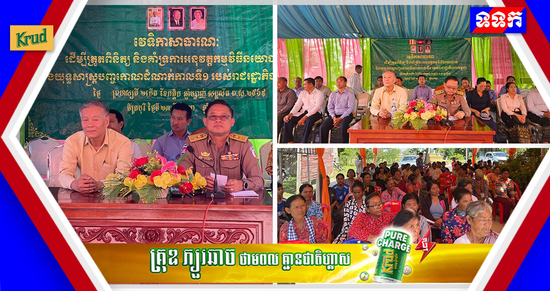 នាព្រឹកថ្ងៃព្រហស្បតិ៍ ២កើត ខែកត្តិក ឆ្នាំម្សាញ់ សប្តស័ក ព.ស.២៥៦៩ ត្រូវនឹងថ្ងៃទី២៣  ខែតុលា ឆ្នាំ២០២៥ ឯកឧត្តម ប៊ូ វណ្ណារិទ្ធ អនុរដ្ឋលេខាធិការក្រសួងព័ត៌មាន និងជាអនុប្រធានក្រុមការងាររាជរដ្ឋាភិបាលចុះមូលដ្ឋានស្រុកចិត្របុរី តំណាងឯកឧត្តម សុខ ចាន់ភក្តី រដ្ឋលេខាធិការក្រសួងព័ត៌មាន និងជាប្រធានក្រុមការងាររាជរដ្ឋាភិបាលចុះមូលដ្ឋានស្រុកចិត្របុរី ឯកឧត្តម ទុយ ប៊ុនសេរីរ័ត្នមុនី អភិបាលរងខេត្ត និងជាប្រធានក្រុមការងារខេត្តចុះមូលដ្ឋានស្រុកចិត្របុរី តំណាង ឯកឧត្តម វ៉ា ថន អភិបាលនៃគណៈអភិបាលខេត្ត អញ្ជើញជាអធិបតីភាពក្នុងវេទិកាសាធារណ: ដើម្បីត្រួតពិនិត្យ និងគាំទ្រការអនុវត្តកម្មវិធីនយោបាយ និងយុទ្ធសាស្រ្តបញ្ចកោណដំណាក់កាលទី១ របស់រាជរដ្ឋាភិ បាលកម្ពុជា ក្នុងបរិវេណវត្តអាលច ឃុំកន្ទួត ស្រុកចិត្របុរី ដើម្បីចុះជួបជាមួយប្រជាពលរដ្ឋ ដោះស្រាយបញ្ហាប្រឈម ក្តីទុក្ខកង្វល់ផ្សេងៗដែលបងប្អូនប្រជាពលរដ្ឋត្រូវបានស្នើសុំឱ្យអាជ្ញាធរជួយដោះស្រាយ ស្របតាមគោល ការណ៍រាជរដ្ឋាភិបាល។