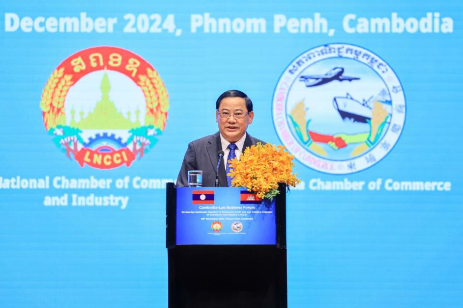 ឯកឧត្តម សនសៃ ស៊ីផាន់ដន នាយករដ្ឋមន្ត្រីនៃ សាធារណរដ្ឋ ប្រជាធិបតេយ្យ ប្រជា មានិត ឡាវ អញ្ជើញ ថ្លែង សុន្ទរកថា គន្លឹះ បើក វេទិកាធុរកិច្ច កម្ពុជា ឡាវ និង បាន សង្កត់ ធ្ងន់ អំពី តួនាទី ដ៏ សំខាន់ របស់ វិស័យ ឯកជន ក្នុងកា រជំរុញ កិច្ច សហ ប្រតិបត្តិការ សេដ្ឋកិច្ច ពាណិជ្ជកម្ម និង វិនិយោគ រវាង ប្រទេស ទាំងពីរ ។ ឯកឧត្តម បាន គូស បញ្ជាក់ថា រដ្ឋាភិបាល នៃ ប្រទេស ទាំងពីរ បាន លើក កម្ពស់ កម្រិត នៃ កិច្ច សហប្រតិបត្តិការ និង ភាព ជា ដៃ គូ ទៅ ជា ភាព ជា ដៃ គូ យុទ្ធ សាស្ត្រ យូរ អង្វែង ដោយ រាប់ បញ្ចូល ទាំង ផែនការ កិច្ច សហ ប្រតិបត្តិការកម្ពុជា ឡាវ រយៈពេល ប្រាំ ឆ្នាំ ផង ដែរ (២០២៣-២០២៧) ។