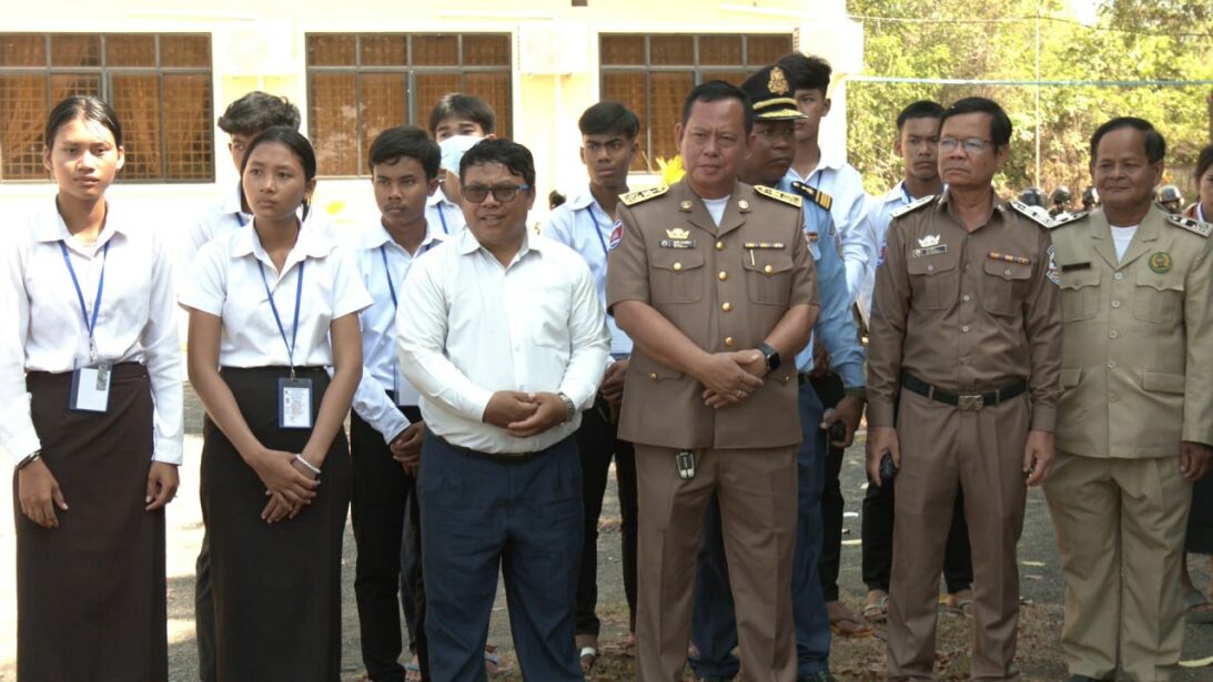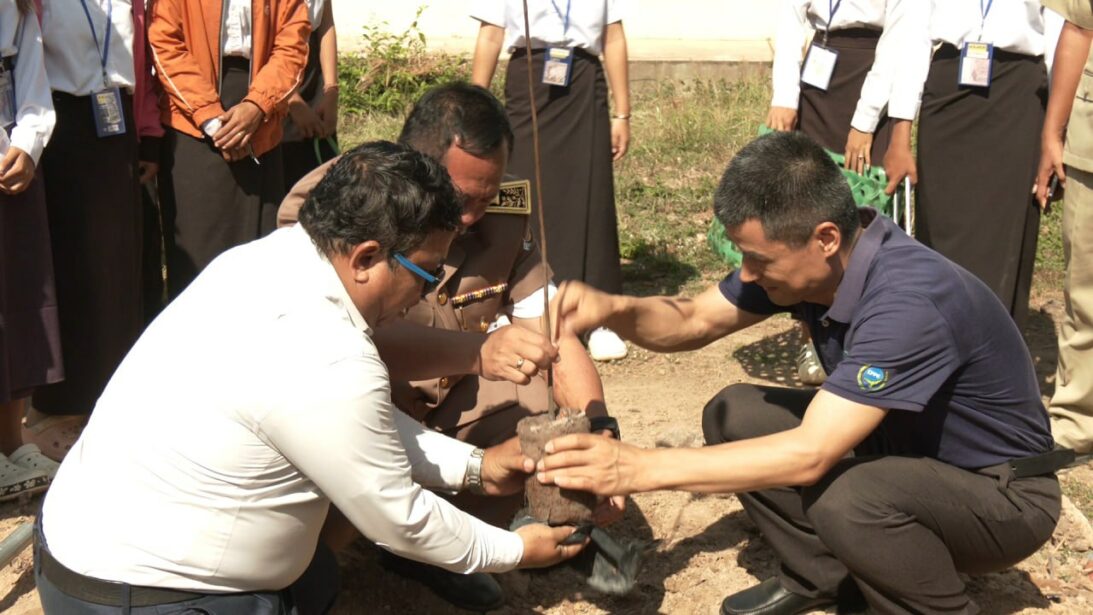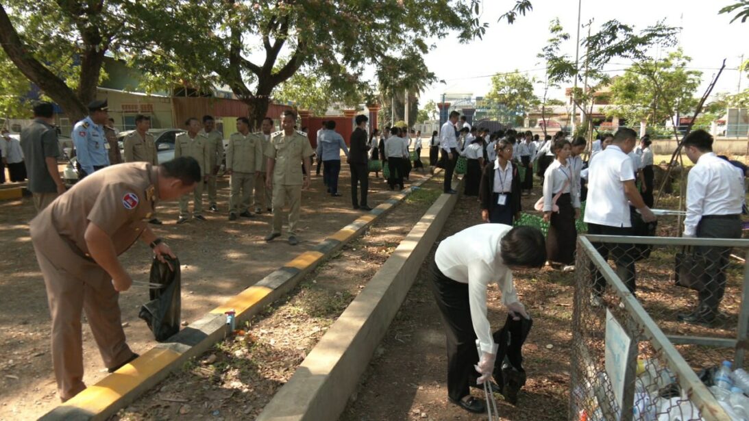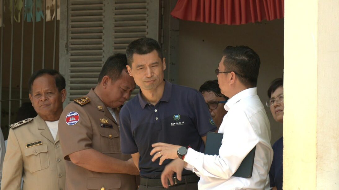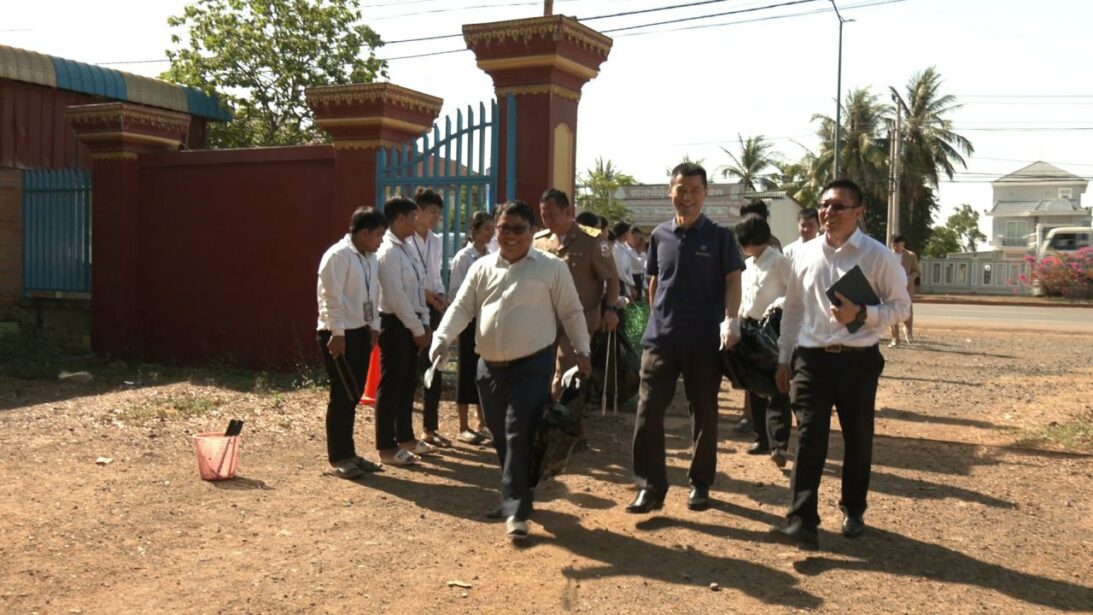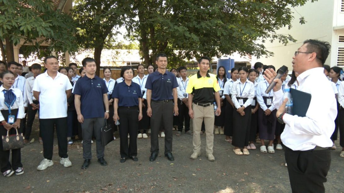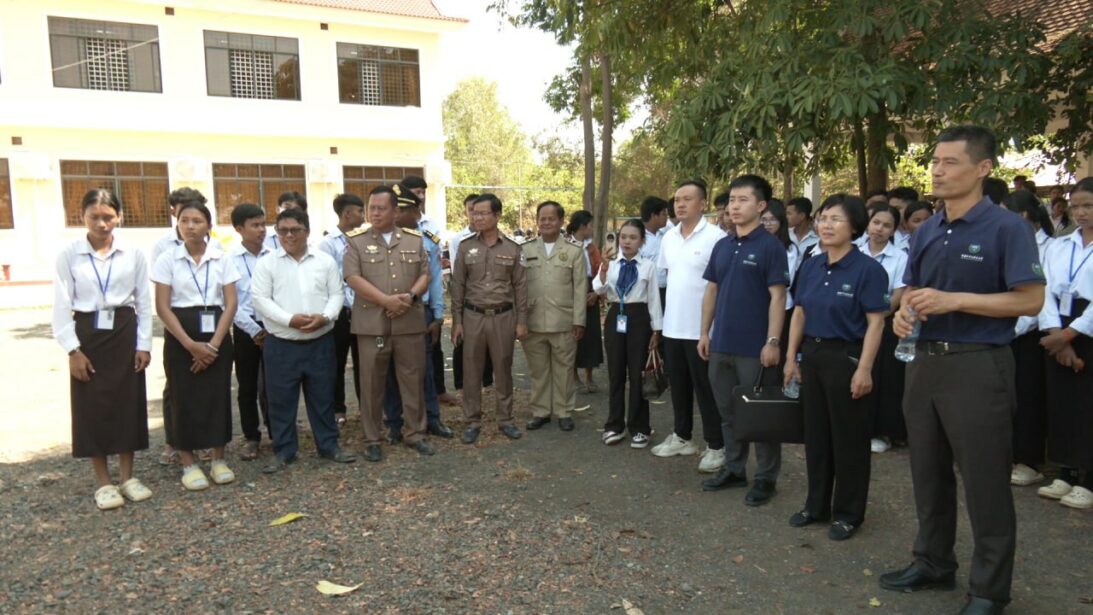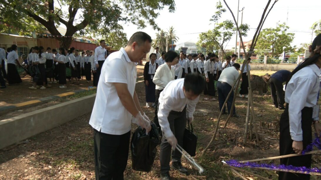 លោក លីវ វិនជឺ (Liu Wenzhi) ប្រធានការិយាល័យមូលនិធិចិន PEACELAND ប្រចាំកម្ពុជា ដែលបានផ្តល់ដបទឹកអ៊ីណុកចំនួន២០រួមចំណែកដល់ការកាត់បន្ថយការប្រើប្រាស់ប្លាស្ទិកនៅក្នុងវិទ្យាល័យ។