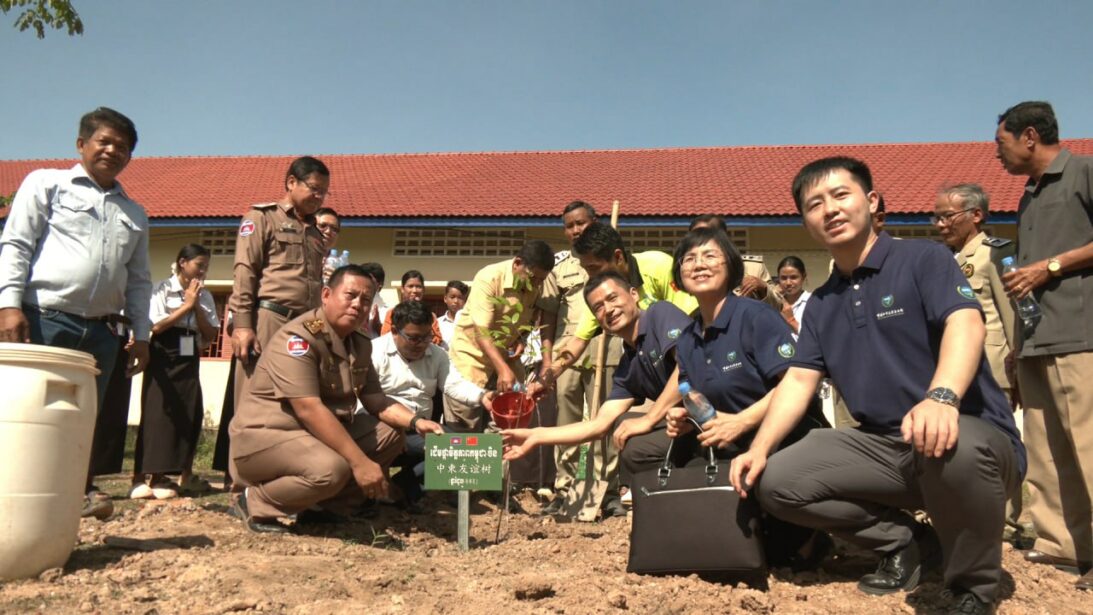 លោក លីវ ចានគ័រ (Liu Zhanguo) ប្រធានការិយាល័យមូលនិធិចិនដេីម្បីសន្តិភាពនិងការអភិវឌ្ឍប្រចាំកម្ពុជា បានថ្លែងថា កិច្ចកសាងសហគមន៍រួមជីវិតនៅក្នុងអរិយធម៌ចិនមានអាយុកាលជាង២៧០០ឆ្នាំ ដោយបានលើកកម្ពស់ការថែរក្សាបរិស្ថានដូចជាការថែរក្សាកែវនេត្រារបស់ខ្លួន។ លោកក៏បានរំលេចថា ការផ្សារភ្ជាប់ជាមួយបរិស្ថានក្នុងពេលបុណ្យឆេងម៉េង បានក្លាយជាចលករដល់ក្រុមការងារមកដាំដើមផ្ការំដួលនៅក្នុងវិទ្យាល័យនេះ ហើយលោកបានបញ្ជាក់ថា ដើមផ្ការំដួលមិនត្រឹមតំណាងផ្កាជាតិរបស់កម្ពុជាប៉ុណ្ណោះទេ ថែមទាំង អាចស្រូបកាបូនឌីអុកស៊ីតបាន២១គីឡូក្រាមក្នុងមួយឆ្នាំទៀតផង។ លោកសង្ឃឹមថា ដើមផ្ការរំដួលនាថ្ងៃនេះ ប្រាកដជាចាក់ឫសយ៉ាងជ្រៅ និងរឹងមាំដូចការជឿទុកចិត្តគ្នាទៅវិញទៅមករវាងចិន និងកម្ពុជា។