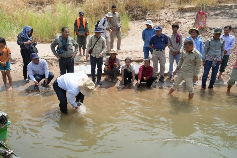 ខេត្តក្រចេះ÷នៅព្រឹកថ្ងៃទី២២ ខែមេសា ឆ្នាំ២០២៦ លោកជំទាវ អ៊ឹម រចនា អនុរដ្ឋ​លេខា​ធិការក្រសួងកសិកម្ម រុក្ខាប្រមាញ់ និងនេសាទ បានអញ្ជើញដឹក​នាំ​ក្រុមការងារជំនាញអភិរក្សជលផល និងមន្រ្តីពាក់ព័ន្ធ លែង​កន្ធាយ​ក្បាលកង្កែប ចំនួន ១៥ក្បាល ចូលដែនទឹកធម្មជាតិ និងចុះពិនិត្យទីតាំង​សំបុក​កន្ធាយ ពង្រឹងការគ្រប់គ្រងសត្វកន្ធាយក្បាលកង្កែប នៅភូមិ​អូរក្រសាំង ឃុំបឹងចារ ស្រុកសំបូរ ក្នុងខេត្តក្រចេះ។