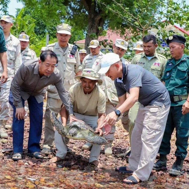 ខេត្តកែប ៖ ឯកឧត្តម ហ៊ួរ មិថុនា អភិបាលរងខេត្តកែប ព្រមទាំងលោកឧត្តមនាវីទោ លី ហួត មេបញ្ជាការទីបញ្ជាការជួរមុខនៃអគ្គលេខាធិការដ្ឋានគណៈកម្មាធិការជាតិសន្តិសុខលម្ហសមុទ្រ នៅថ្ងៃទី១៩ ខែមេសា ឆ្នាំ២០២៦ បានអញ្ជើញ លែងអណ្តើកសមុទ្រ (ល្មិច) មួយក្បាល ត្រឡប់ទៅក្នុងសមុទ្រវិញ បន្ទាប់ពីបងប្អូនអ្នកនេសាទនៅតំបន់កោះពោធិ៍ បានប្រគល់សត្វល្មិចនេះជូនស្នាក់ការសន្តិសុខកោះពោធិ៍ ក្រោយរូបវាកើតមានករណីជាប់ខ្សែលបដោយចៃដន្យ។