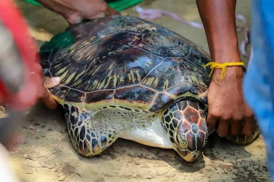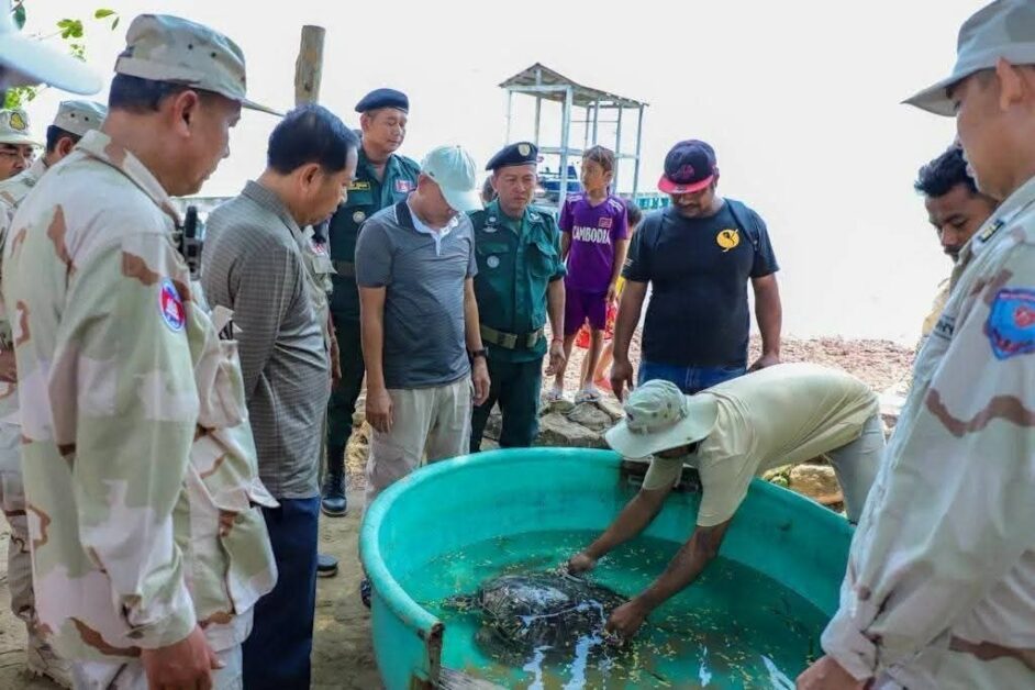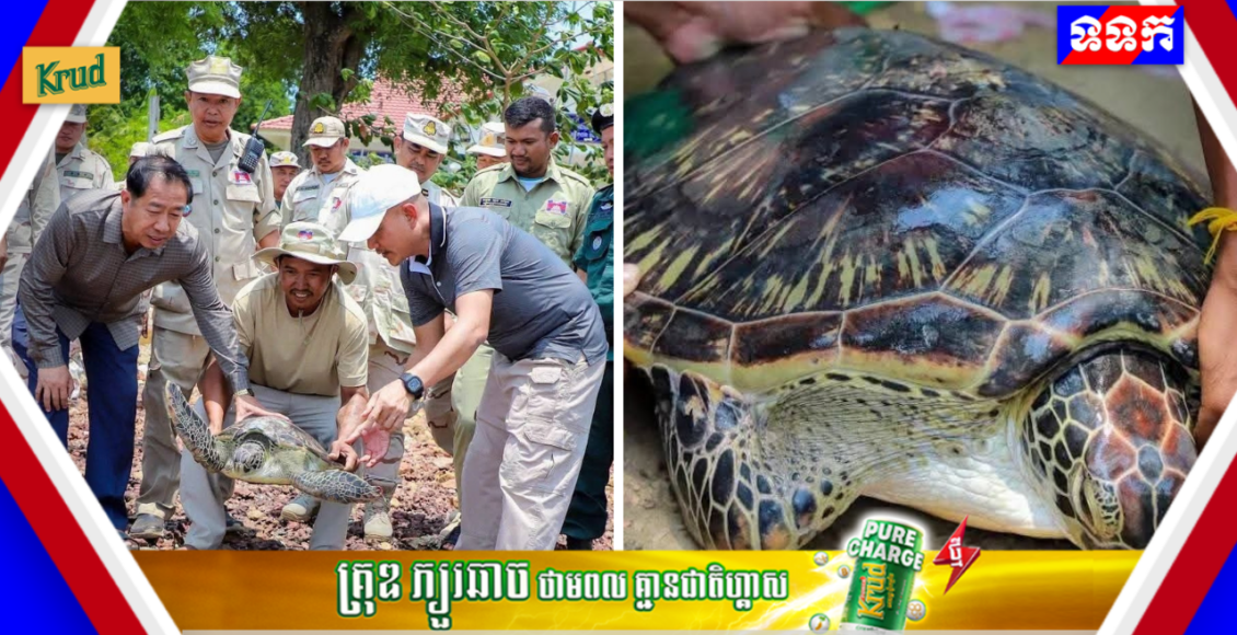 សត្វល្មិច ឬ អណ្តើកសមុទ្រ មួយក្បាលត្រូវអាជ្ញាធរខេត្តកែប លែងឲ្យចូលក្នុងដែនសមុទ្យធម្មជាតិវិញ