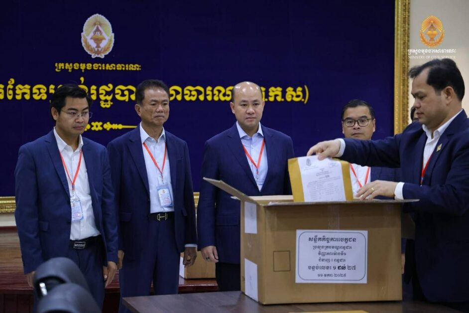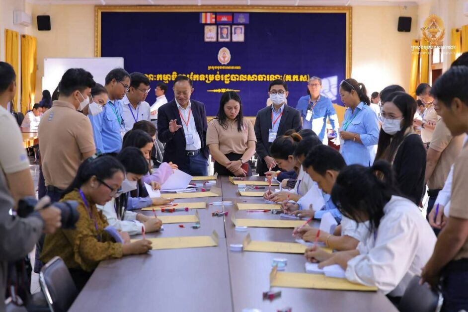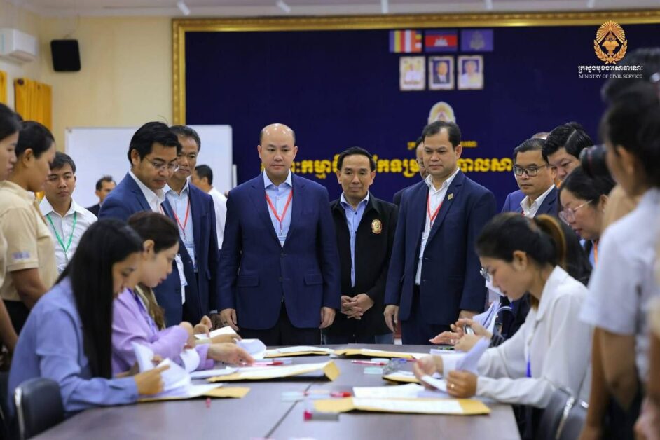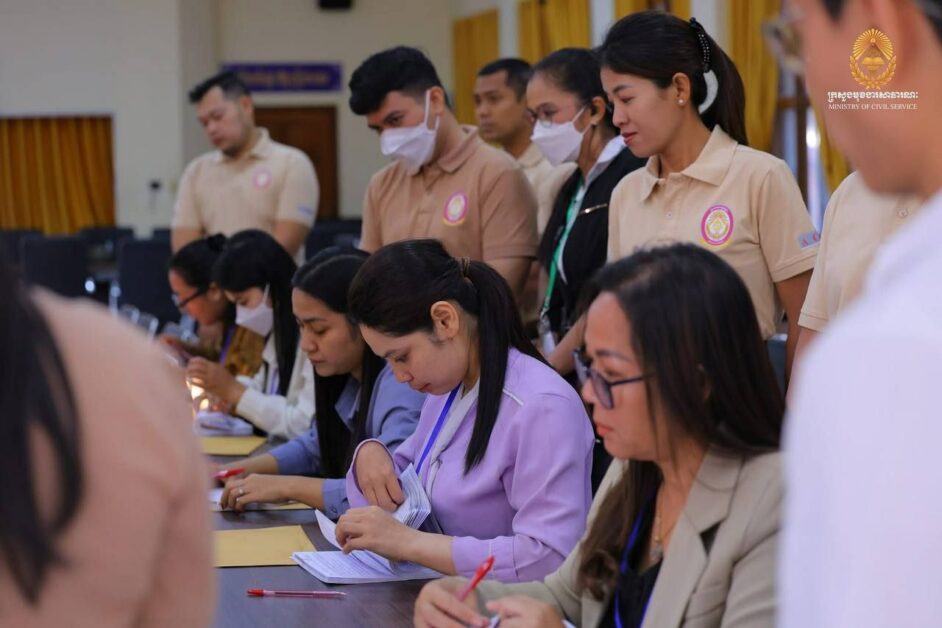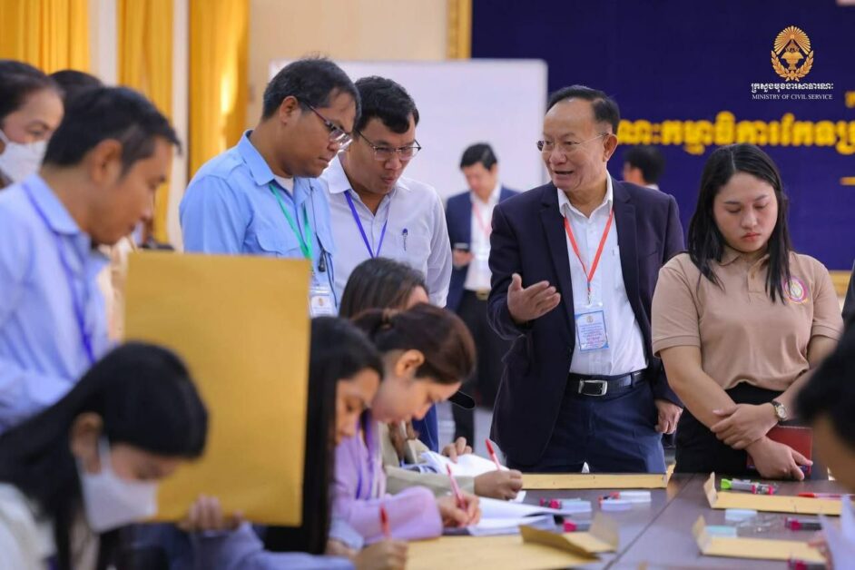 ព្រឹកថ្ងៃទី១២ ខែមករា ឆ្នាំ២០២៥ នៅមណ្ឌលកំណែសាលាភូមិន្ទរដ្ឋបាល ឯកឧត្តម ឧបនាយករដ្ឋមន្ត្រី ហ៊ុន ម៉ានី រដ្ឋមន្ត្រីក្រសួងមុខងារសាធារណៈ និងជាប្រធានគណៈកម្មការរៀបចំការប្រឡងប្រជែង បានអញ្ជើញពិនិត្យដោយផ្ទាល់ទៅលើដំណើរការ និងនីតិវិធីកែសន្លឹកកិច្ចការនៃការប្រឡងប្រជែងជ្រើសរើសមន្ត្រីរាជការ នៃអគ្គនាយកដ្ឋានពន្ធដារ ឱ្យចូលបម្រើការងារក្នុងក្របខណ្ឌក្រសួងសេដ្ឋកិច្ច និងហិរញ្ញវត្ថុ លើវិញ្ញាសាសរសេរលើកទី២។