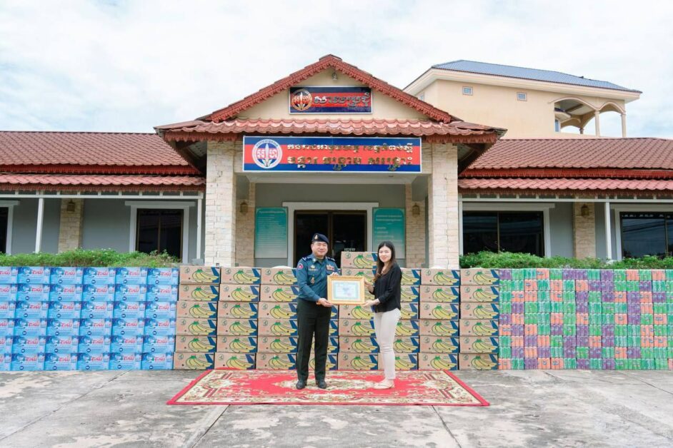 កញ្ញា ពាង ស្រីម៉ុច,កញ្ញា ទៀង បូនីរ៉ា,លោកស្រី ម៉េង លី,លោក ហាវ​ ច័ន្ទថារិទ្ធ និងលោកស្រី លីសុភ័ក្រ្ត​​ ដោយបានឧបត្ថម្ភ​​ ទឹកក្រូច១៥០កេស ​និងមី(ម៉ាក់វីនវីន)ចំនួន២០០កេស។