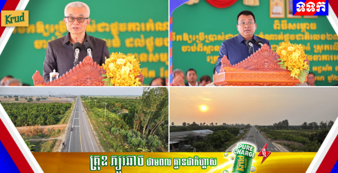 នាព្រឹកថ្ងៃ ទី២៧ ខែមេសា ឆ្នាំ២០២៦នេះ ឯកឧត្តមអគ្គបណ្ឌិតសភាចារ្យ អូន ព័ន្ធមុនីរ័ត្ន ឧបនាយករដ្ឋមន្ត្រី រដ្ឋមន្ត្រីក្រសួងសេដ្ឋកិច្ច និងហិរញ្ញវត្ថុ តំណាងដ៏ខ្ពង់ខ្ពស់សម្តេចធិបតី ហ៊ុន ម៉ាណែត បានអញ្ជើញជាអធិបតីក្នុងពិធីសម្ពោធដាក់ឱ្យប្រើប្រាស់ជាផ្លូវការនូវ កំណាត់ផ្លូវជាតិលេខ២៣ ប្រវែង ១៩,៨៣ គីឡូម៉ែត្រ ក្នុងខេត្តកណ្តាលពិធីនេះក៏មានការចូលរួមពី លោកស្រី យ៉សមីន ស៊ីដឌីហ្គី (Ms. YASMIN SIDDIQI) នាយិកាធនាគារ អភិវឌ្ឍន៍អាស៊ីប្រចាំព្រះរាជាណាចក្រកម្ពុជា សមាជិក សមាជិកានៃព្រឹទ្ធសភា រដ្ឋសភា និង រាជរដ្ឋាភិបាល អភិបាលខេត្ត ឯកឧត្តម លោកជំទាវ ថ្នាក់ដឹកនាំក្រសួង មន្ទីរខេត្ត និងបងប្អូនប្រជាពលរដ្ឋជាច្រើនរូប។