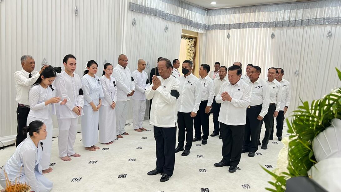 សម្ដេចពិជ័យសេនា ទៀ បាញ់ ឧត្តមប្រឹក្សាផ្ទាល់ព្រះមហាក្សត និងគណៈប្រតិភូ លើកហត្ថប្រណម្យឧទ្ទិសបួងសួងដល់ដួងវិញ្ញាណក្ខន្ធសពឯកឧត្តមអ្នកឧកញ៉ា ឧត្តមមេត្រីវិសិដ្ឋ ហ៊ុន សាន សូមឆាប់បានចាប់កំណើតកើតក្នុងសុគតិភពកុំបីឃ្លៀងឃ្លាតឡើយ៕