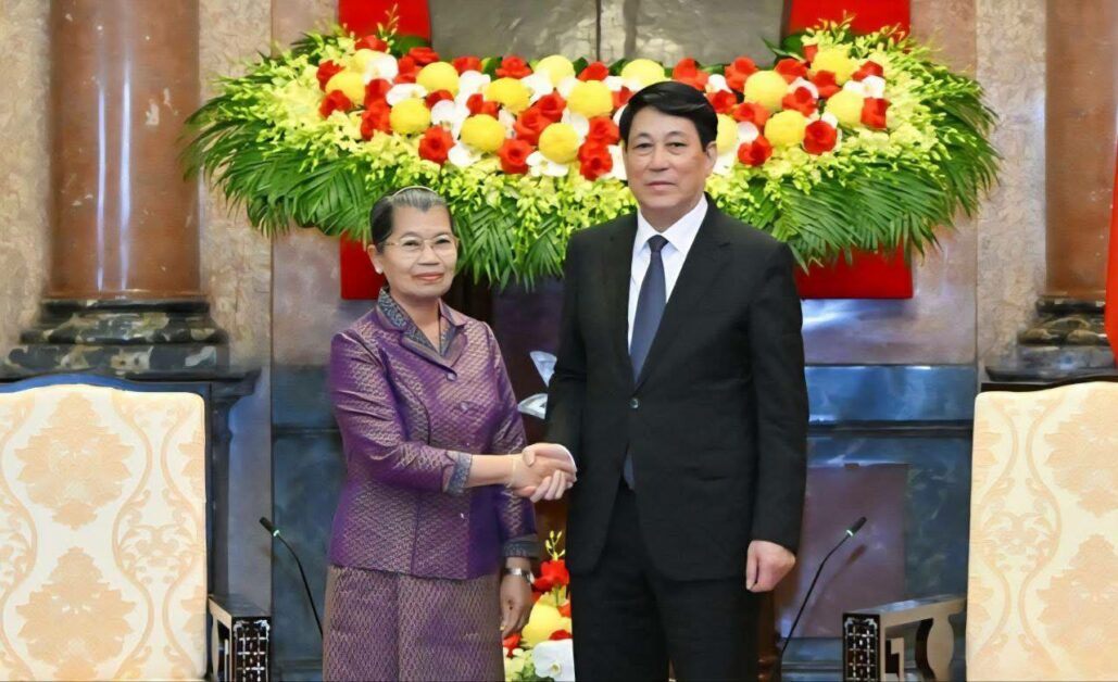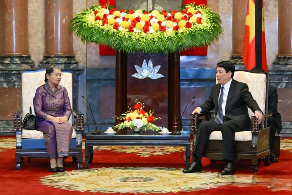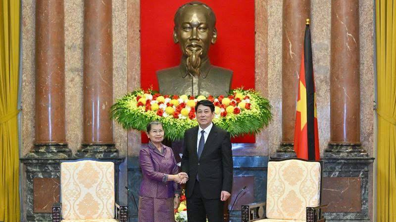សម្តេចកិតិ្តសង្គហបណ្ឌិត ម៉ែន សំអន អនុប្រធានគណបក្សប្រជាជនកម្ពុជា ជួបសម្តែងការគួរសមចំពោះ ឯកឧត្តម លឿង គឿង (Luong Cuong) ប្រធានរដ្ឋនៃសាធារណៈរដ្ឋសង្គមនិយមវៀតណាម នៅទីក្រុងហាណូយ ប្រទេសវៀតណាម នាព្រឹកថ្ងៃអាទិត្យ ១៤រោច ខែពិសាខ ឆ្នាំម្សាញ់ សប្តស័ក ព.ស.២៥៦៩ ត្រូវនឹង ថ្ងៃទី២៥ ខែឧសភា ឆ្នាំ២០២៥។