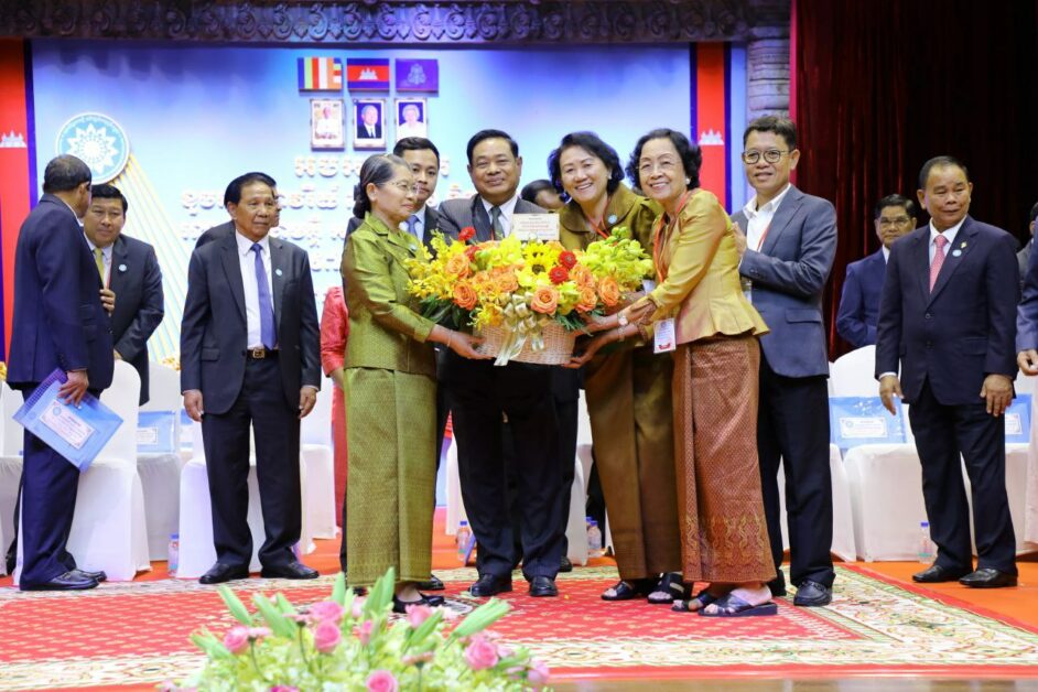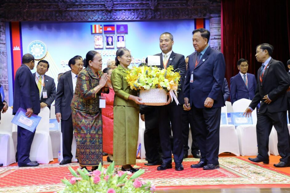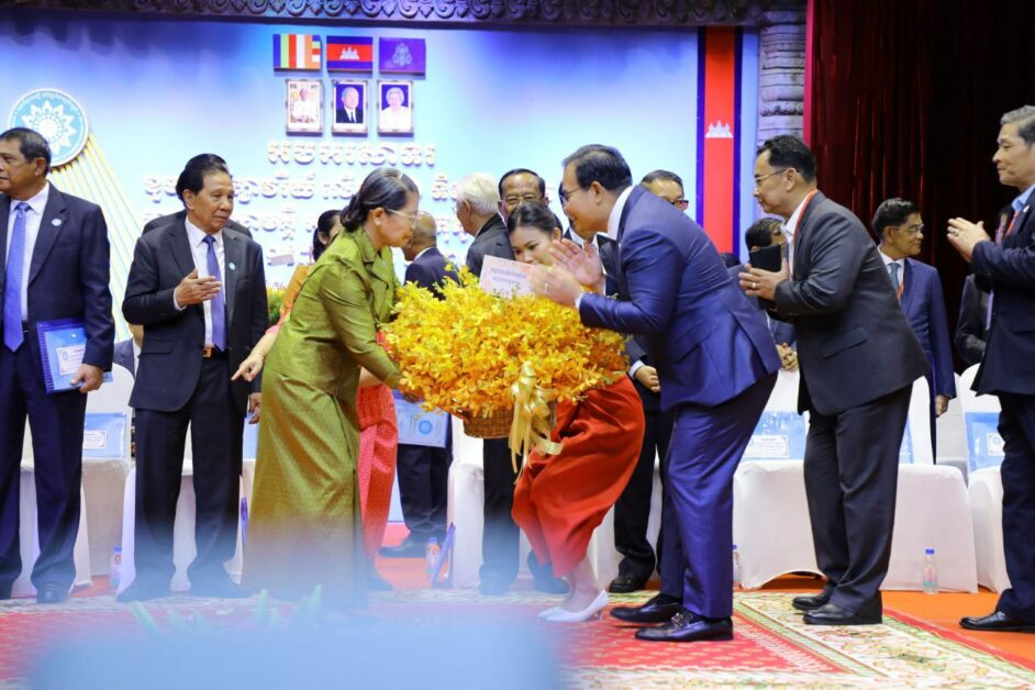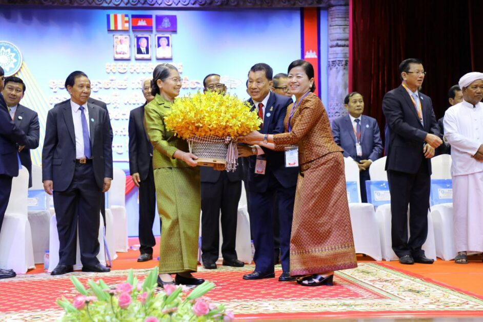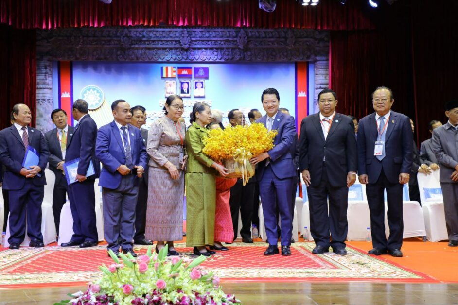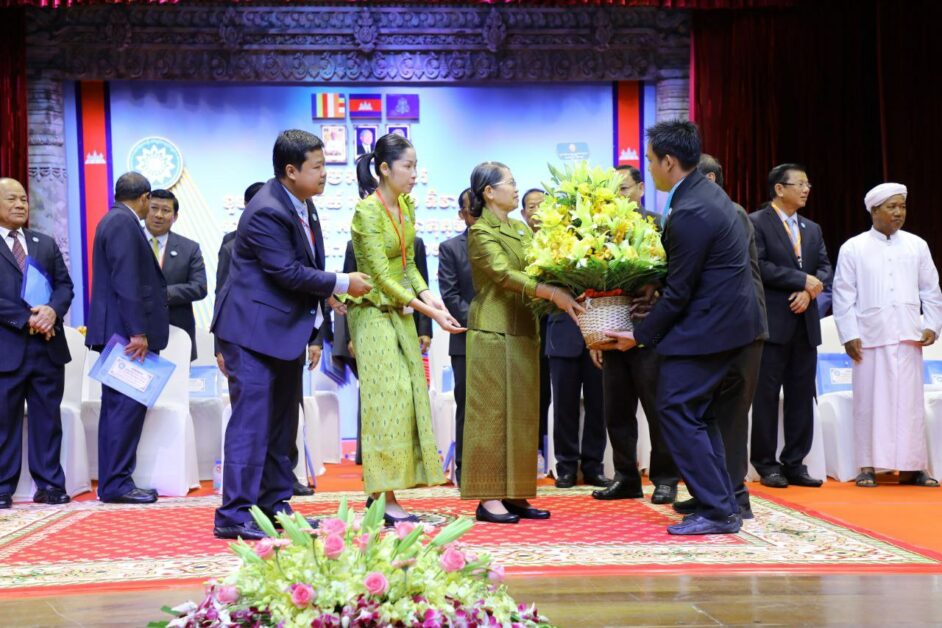 នៅក្នុងឱកាសនេះ ឯកឧត្តម លោកជំទាវ អ្នកឧកញ៉ា លោកឧកញ៉ា លោក លោកស្រី និង សមាជិក សមាជិកា ក្រុមប្រឹក្សាជាតិរណសិរ្សសាមគ្គី អភិវឌ្ឍន៍មាតុភូមិកម្ពុជា តំណាងអង្គទូត តំណាងសេនានុព័ន្ធយោធា តំណាងសមាគមនានា ភ្ញៀវកិត្តិយសជាតិ-អន្តរជាតិ នៃអង្គមិទ្ទិញ បានអញ្ជើញជូនកន្ត្រក់ផ្កា ដល់សម្តេចកិត្តិសង្គហបណ្ឌិត ម៉ែន សំអន ប្រធានក្រុមប្រឹក្សារណសិរ្សសាមគ្គី អភិវឌ្ឍន៍មាតុភូមិកម្ពុជា ផងដែរ៕