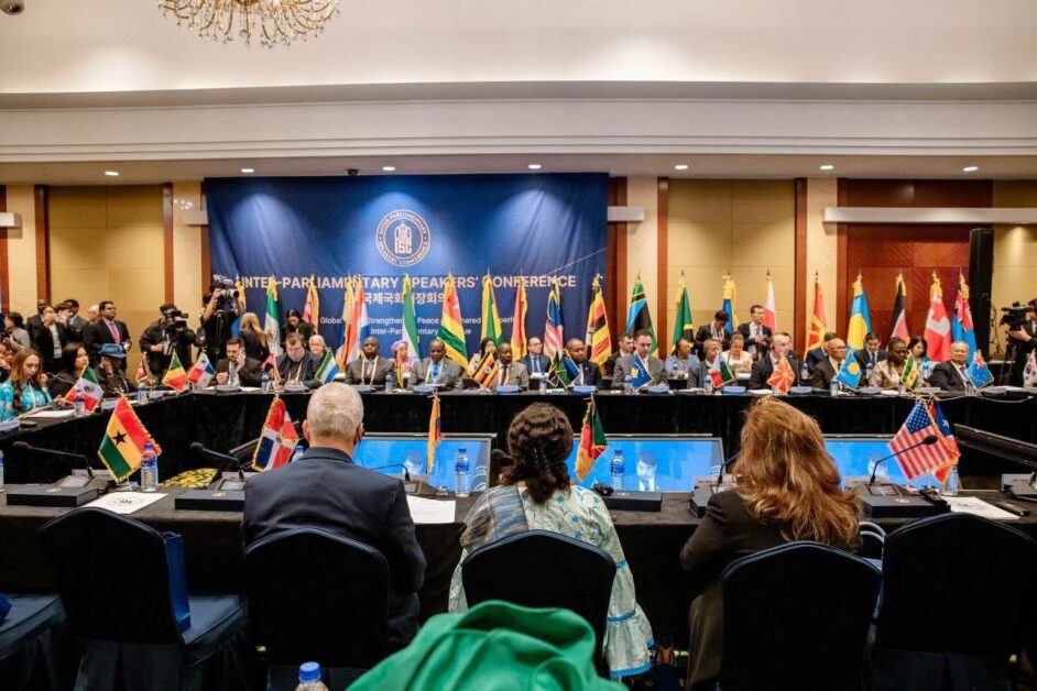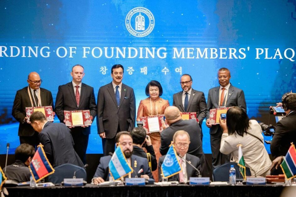 នៅព្រឹកថ្ងៃទី១១ ខែមេសា ឆ្នាំ២០២៥ សម្តេចមហារដ្ឋសភាធិការធិបតី ឃួន សុដារី ប្រធានរដ្ឋសភានៃព្រះរាជាណាចក្រកម្ពុជា បានអញ្ជើញដឹកនាំគណៈប្រតិភូជាន់ខ្ពស់រដ្ឋសភាកម្ពុជា ចូលរួមពិធីបើកសន្និសីទប្រធានសភា នៃអន្តរសភា (Inter-Parliamentary Speaker’s Conference/ISC) នៅក្នុងព្រឹត្តិការណ៍កិច្ចប្រជុំកំពូលពិភពលោក២០២៥ របស់សហព័ន្ធសន្តិភាពសកល (Universal Peace Federation World Summit 2025) នៅទីក្រុងសេអ៊ូល សាធារណរដ្ឋកូរ៉េ។