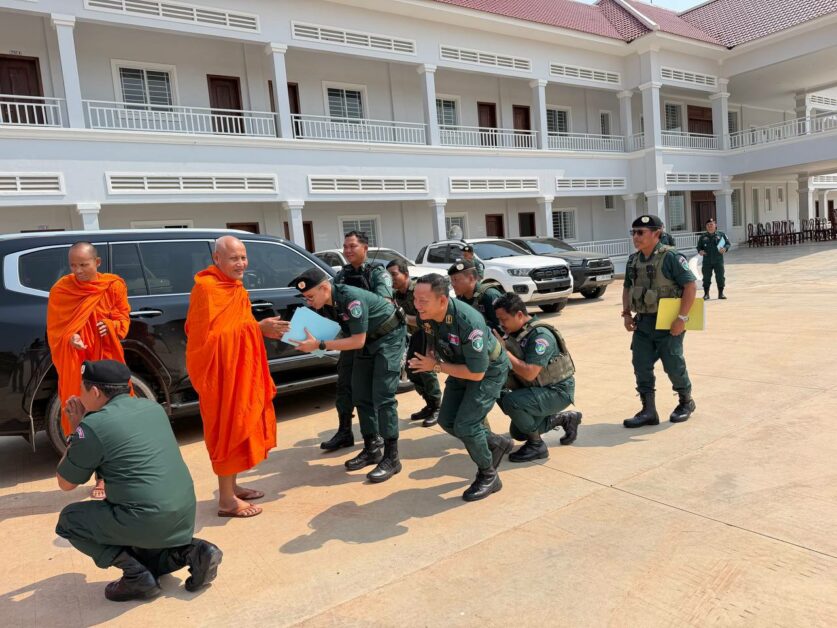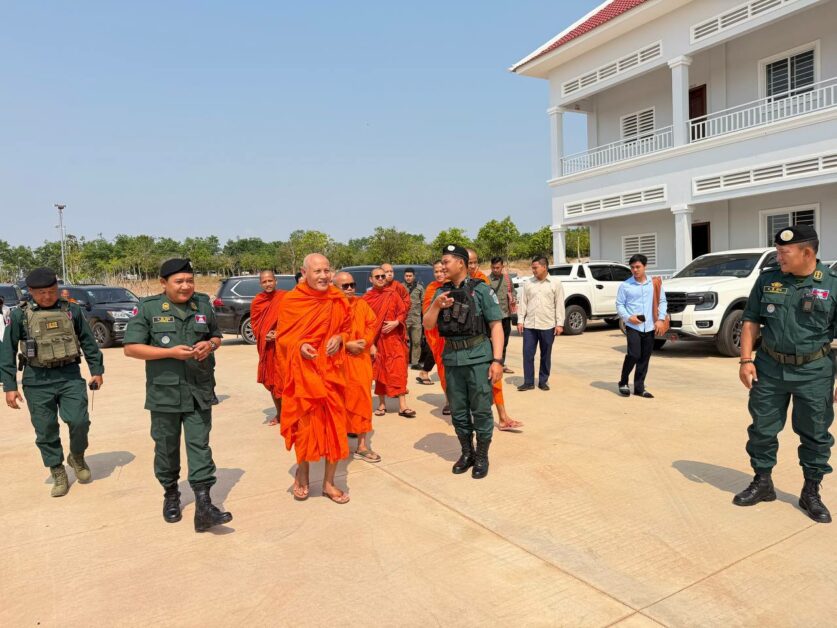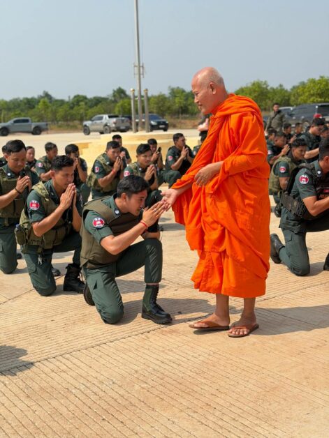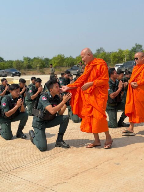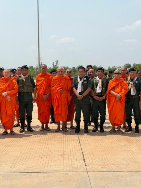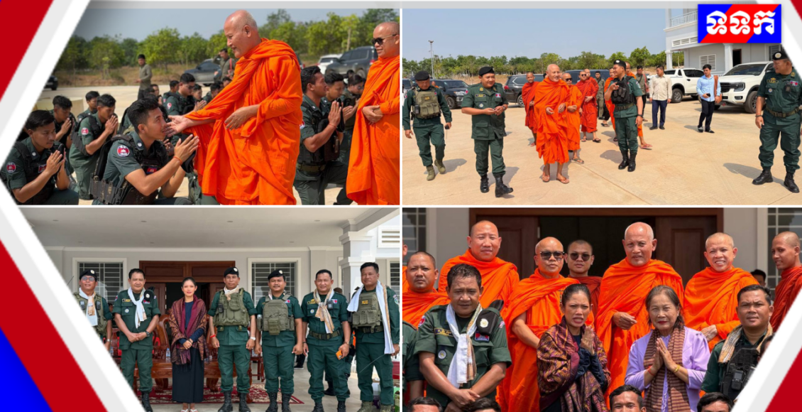 នៅថ្ងៃអង្គារ ទី២៤ ខែមីនា ឆ្នាំ២០២៦ សម្តេចព្រះពោធិវ័ង្សកិត្តិបណ្ឌិត ណយ ច្រឹក សម្តេចព្រះសង្ឃនាយករងទី១ គណៈមហានិកាយ នៃព្រះរាជាណាចក្រកម្ពុជា និងជាព្រះចៅអធិការវត្តច័ន្ទបុរីវង្ស ព្រះរាជតំណាងដ៏ខ្ពង់ខ្ពស់សម្តេចព្រះមហាសុមេធាធិបតីកិត្តិបណ្ឌិត អំ លីមហេង សម្តេចព្រះសង្ឃនាយក នៃព្រះរាជាណាចក្រកម្ពុជា ព្រមទាំងសម្តេចព្រះធម្មលិខិតបណ្ឌិត សៅរ៍ ចន្ទថុល្ល ឧត្តមប្រឹក្សាគណៈមហានិកាយ សម្តេចព្រះមង្គលមុនីរង្សី ហ៊ូ ឈីវនាថ ព្រះប្រធានលេខាធិការដ្ឋានគណៈសង្ឃនាយក ព្រះធម្មវនវាសីបណ្ឌិត ចន្ទ មុនី ព្រះសមុហ៍គណខេត្តកំពង់ឆ្នាំង និងលោកជំទាវ កែ សួនសុភី ស សុខា តំណាងដ៏ខ្ពង់ខ្ពស់ឯកឧត្តម អភិសន្តិបណ្ឌិត ស សុខា ឧបនាយករដ្ឋមន្ត្រី រដ្ឋមន្ត្រីក្រសួងមហាផ្ទៃ រួមជាមួយឯកឧត្តម លោកជំទាវ និងប្រតិភូអមដំណើរទាំងអស់ បានអញ្ជើញ និងយាងចុះសំណេះសំណាល សួរសុខទុក្ខដល់វិរៈកងកម្លាំងនគរបាលការពារព្រំដែនគោក ដែលកំពុងឈរជើងការពារបូរណភាពទឹកដីនៅតាមខ្សែបន្ទាត់ព្រំដែនកម្ពុជា-ថៃ និងកម្ពុជា-ឡាវ។