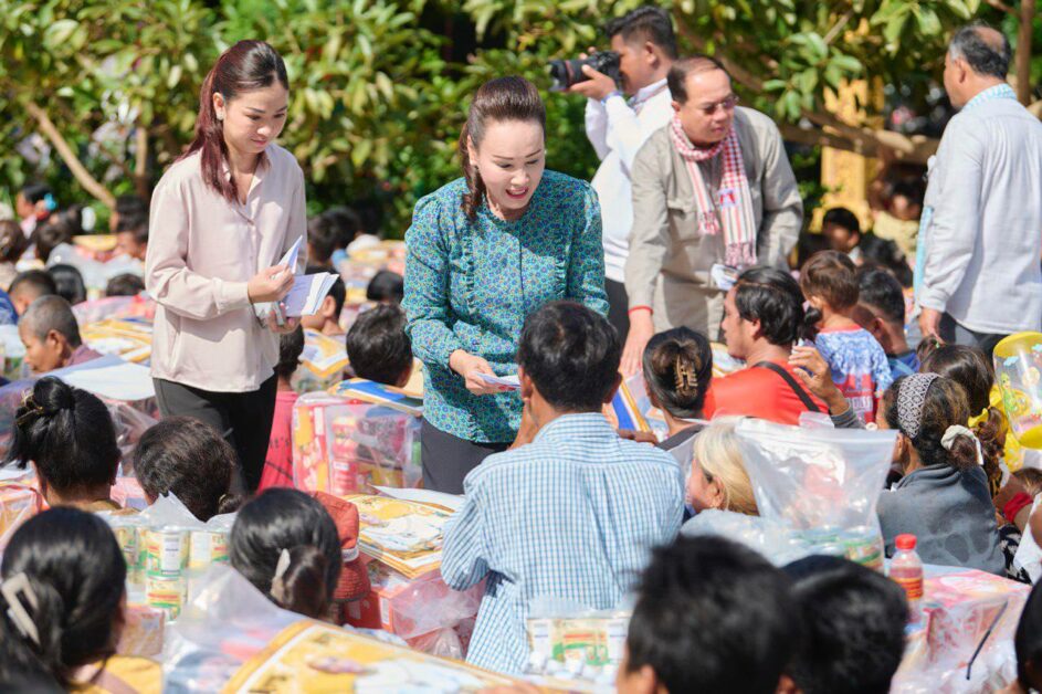 ព្រះរាជអំណោយដ៏ថ្លៃថ្លាព្រះករុណាជាអម្ចាស់ជីវិតលើត្បូង ព្រះមហាក្សត្រនៃព្រះរាជាណាចក្រកម្ពុជា និងសម្តេចព្រះមហាក្សត្រី ព្រះវររាជមាតាជាតិខ្មែរ ជាទីគោរពសក្ការៈដ៏ខ្ពង់ខ្ពស់បំផុត ដែលសម្តេចមហាមន្ត្រី គុយ សុផល ព្រះរាជតំណាង និងលោកជំទាវ សុខ នារី គុយ សុផល បានចែកជូនដល់បងប្អូនប្រជារាស្ត្រទទួលរងគ្រោះ មានចំនួនសរុបជាមេគ្រួសារចំនួន ១ ០១៣នាក់ ដោយក្នុងគ្រួសារនីមួយៗទទួលបាន ៖