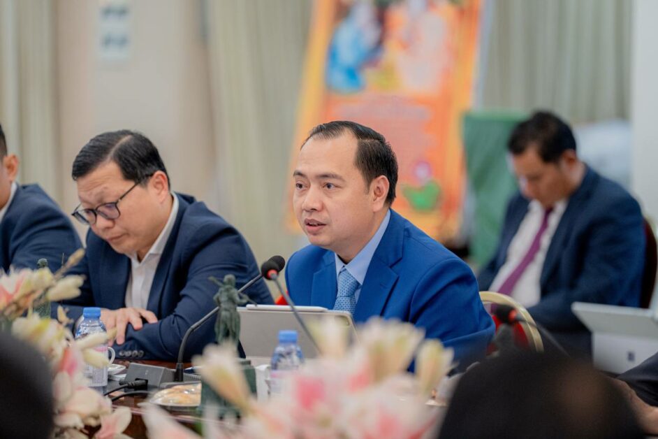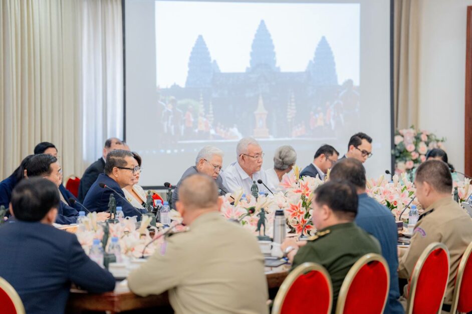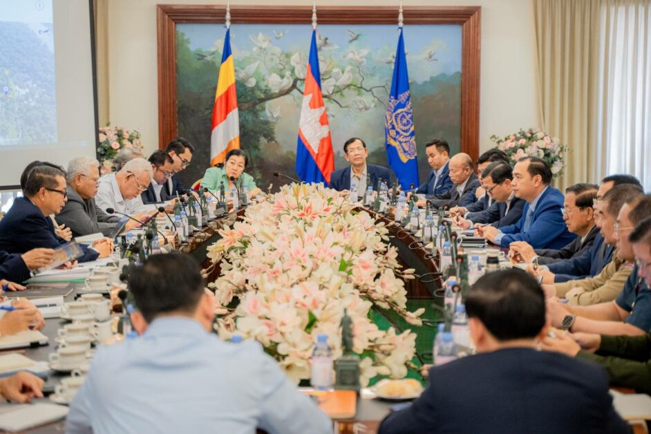 សម្ដេចមហាមន្ត្រី ប្រធានអង្គប្រជុំ មានប្រសាសន៍សំណេះសំណាលបើកកិច្ចប្រជុំ ដោយបានថ្លែងអំណរគុណ និងស្វាគមន៍យ៉ាងកក់ក្ដៅចំពោះវត្តមានឯកឧត្តម លោកជំទាវ លោក លោកស្រី គ្រប់រូប ដែលបានអញ្ជើញមកពីគ្រប់ក្រសួងស្ថាបន័ពាក់ព័ន្ធ ចូលរួមក្នុងកិច្ចប្រជុំដ៏មានសារៈសំខាន់នេះ ដើម្បីទទួលយកនូវផែនការណែនាំដ៏ខ្ពង់ខ្ពស់ ក្នុងការប្រារព្ធព្រះរាជពិធីបួងសួងចម្រើនសេចក្តីសុខ ជូនដល់ព្រះរាជាណាចក្រកម្ពុជា ដែលនឹងប្រព្រឹត្តទៅនៅខាងមុខប្រាសាទអង្គរវត្ត ខេត្តសៀមរាប នាថ្ងៃទី១២ ខែមេសា ឆ្នាំ២០២៥ ខាងមុខនេះ។