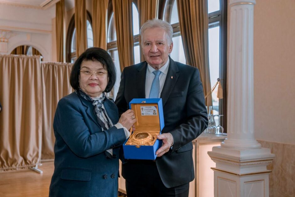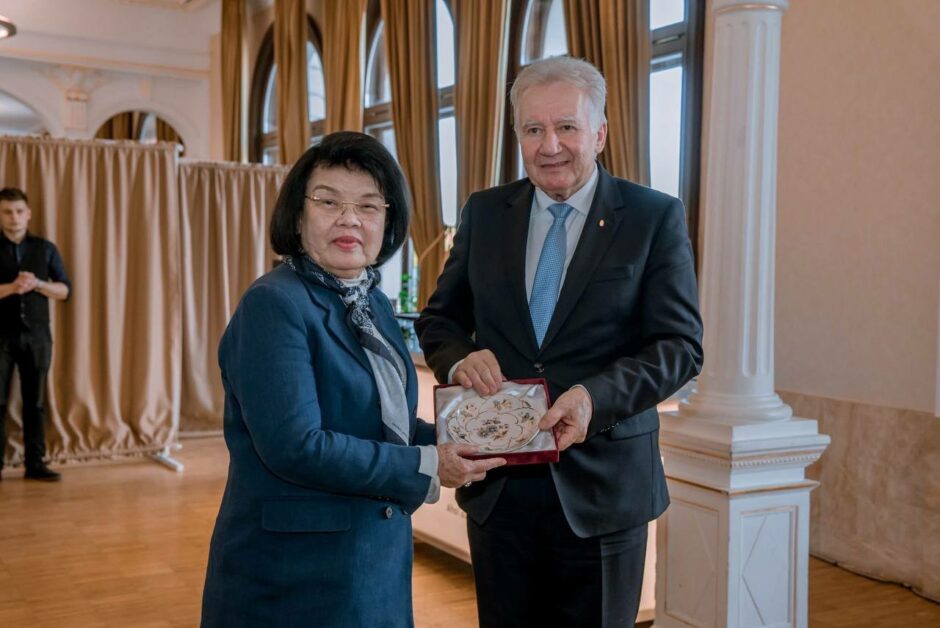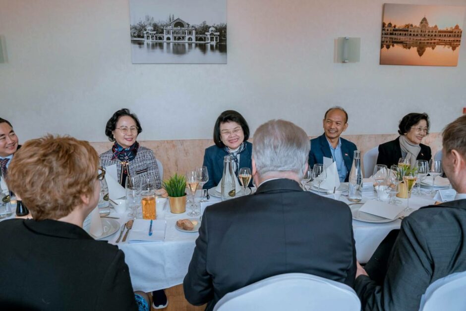 សម្តេចមហារដ្ឋសភាធិការធិបតី ឃួន សុដារី ប្រធានរដ្ឋសភានៃព្រះរាជាណាចក្រកម្ពុជា បានជួបពិភាក្សាការងារក្នុងពេលអាហារថ្ងៃត្រង់ជាមួយ ឯកឧត្តម អ៊ីស្តវ៉ាន យ៉ាកប (Istavan Jakab) អនុប្រធានរដ្ឋសភានៃប្រទេសហុងគ្រី នៅរដ្ឋធានីប៊ុយដាប៉ែស នៅថ្ងៃទី២៦ ខែតុលា ឆ្នាំ២០២៥ នៅក្នុងឱកាសសម្តេចបានកំពុងដឹកនាំគណៈប្រតិភូជាន់ខ្ពស់រដ្ឋសភា បំពេញទស្សនកិច្ចផ្លូវការនិងមិត្តភាព នៅក្នុងប្រទេសហុងគ្រី រយៈពេល៤ថ្ងៃ។