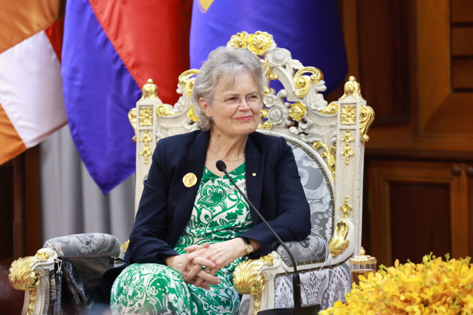 ហ្វ្រង់ស៊ីស អាដាមសុន (Frances Adamson. AC) អភិបាលនៃរដ្ឋអូស្ត្រាលីខាងត្បូង ក្នុងឱកាសជួបសម្តែងការគួរសម និងពិភាក្សាការងារ នៅវិមានរដ្ឋសភា នាព្រឹកថ្ងៃទី១៩ ខែឧសភា ឆ្នាំ២០២៥ ក្នុងពេលដែលលោកជំទាវ បានដឹកនាំគណៈប្រតិភូមកបំពេញទស្សនកិច្ចនៅកម្ពុជា។