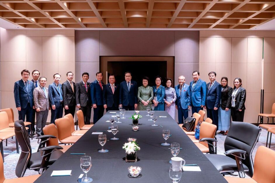 សម្តេចមហារដ្ឋសភាធិការធិបតី ឃួន សុដារី ប្រធានរដ្ឋសភានៃព្រះរាជាណាចក្រកម្ពុជានៅព្រឹកថ្ងៃទី១៧ ខែកញ្ញាឆ្នាំ២០២៥ ក្នុងពេលដឹកនាំគណៈប្រតិភូជាន់ខ្ពស់សភាកម្ពុជា ចូលរួមមហាសន្និបាតអាយប៉ាលើកទី៤៦ នៅទីក្រុងគូឡាឡំាពួ ប្រទេសម៉ាឡេស៊ី បានជួបពិភាក្សាការងារជាមួយ ឯកឧត្តម ជិន ថាញ់មិន ប្រធានរដ្ឋសភាសាធារណរដ្ឋសង្គមនិយមវៀតណាម ។