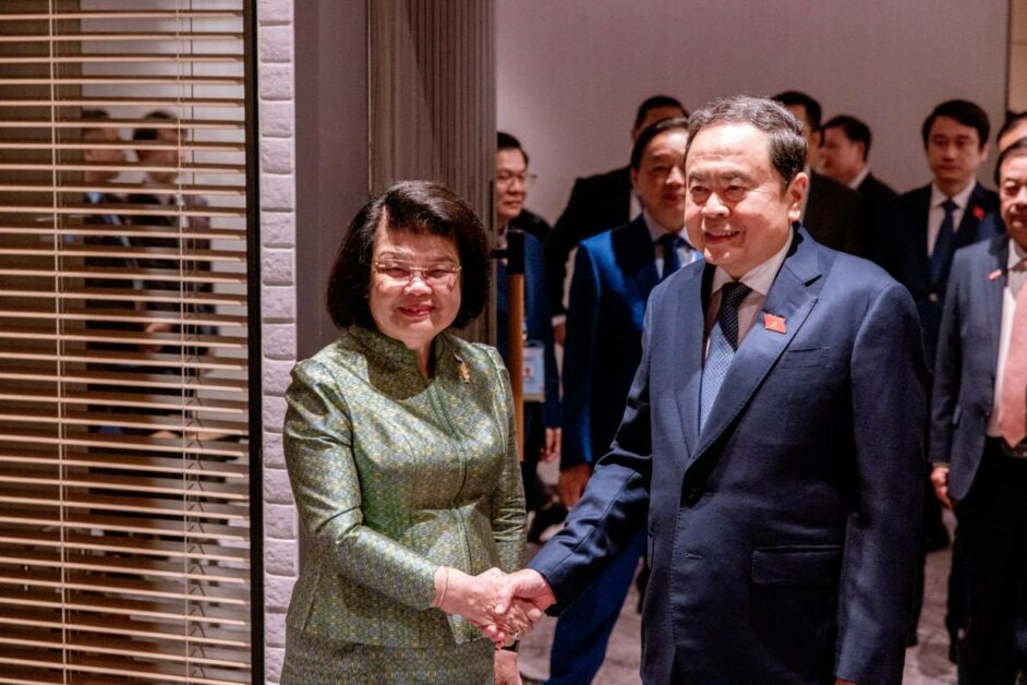 សម្តេចមហារដ្ឋសភាធិការធិបតី ឃួន សុដារី ប្រធានរដ្ឋសភានៃព្រះរាជាណាចក្រកម្ពុជានៅព្រឹកថ្ងៃទី១៧ ខែកញ្ញាឆ្នាំ២០២៥ ក្នុងពេលដឹកនាំគណៈប្រតិភូជាន់ខ្ពស់សភាកម្ពុជា ចូលរួមមហាសន្និបាតអាយប៉ាលើកទី៤៦ នៅទីក្រុងគូឡាឡំាពួ ប្រទេសម៉ាឡេស៊ី បានជួបពិភាក្សាការងារជាមួយ ឯកឧត្តម ជិន ថាញ់មិន ប្រធានរដ្ឋសភាសាធារណរដ្ឋសង្គមនិយមវៀតណាម ។