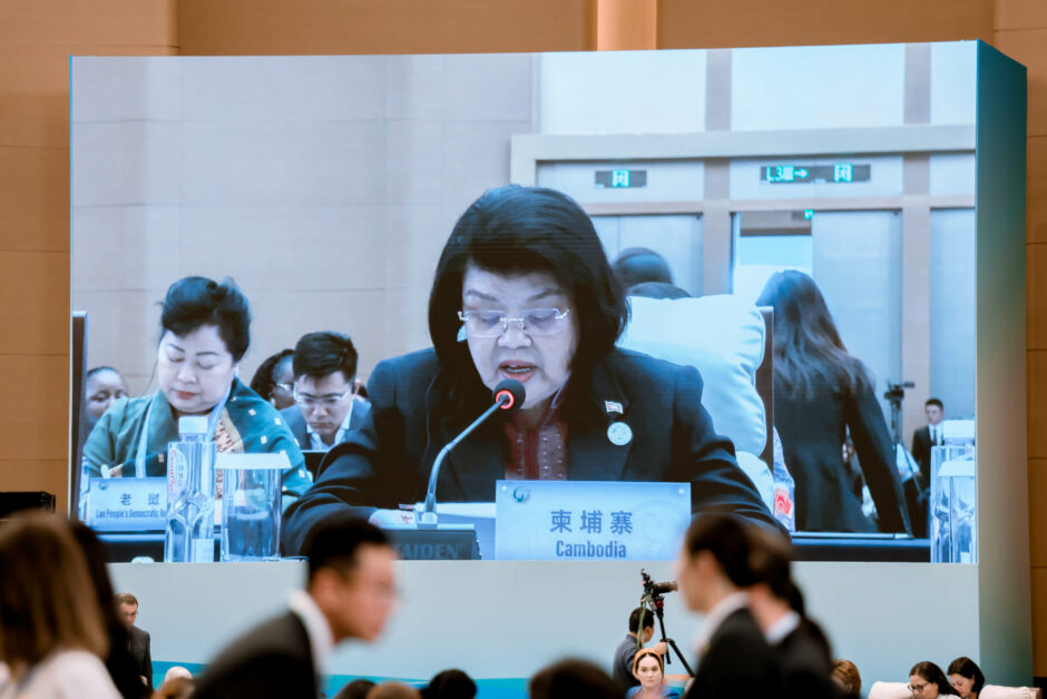 សម្តេចមហារដ្ឋសភាធិការធិបតី ឃួន សុដារី ប្រធានរដ្ឋសភានៃព្រះរាជាណាចក្រកម្ពុជា បានអញ្ជើញថ្លែងសុន្ទរកថាស្តីពីវឌ្ឍនភាពនៃការរីកចម្រើនវិស័យសមភាពយេនឌ័រ នៅក្នុងប្រទេសកម្ពុជា ជម្រាបជូនកិច្ចប្រជុំថ្នាក់ដឹកនាំពិភពលោក ស្តីពីស្រ្តី នៅក្នុងទីក្រុងប៉េកំាង សាធារណរដ្ឋប្រជាមានិតចិន នៅរសៀលថ្ងៃទី១៣ ខែតុលាឆ្នាំ២០២៥នេះថា ចាប់តាំងពីឆ្នាំ១៩៩៥ មកប្រទេសកម្ពុជាបានអនុវត្តនូវសេចក្តីថ្លែងការណ៍ និងផែនការសកម្មភាពទីក្រុងប៉េកាំង ដែលជាគោលការណ៍ណែនាំមួយនៅក្នុងការអភិវឌ្ឍជាតិ។ “ស្រ្តី គឺជាឆ្អឹងខ្នងនៃសេដ្ឋកិច្ច និងសង្គម”។