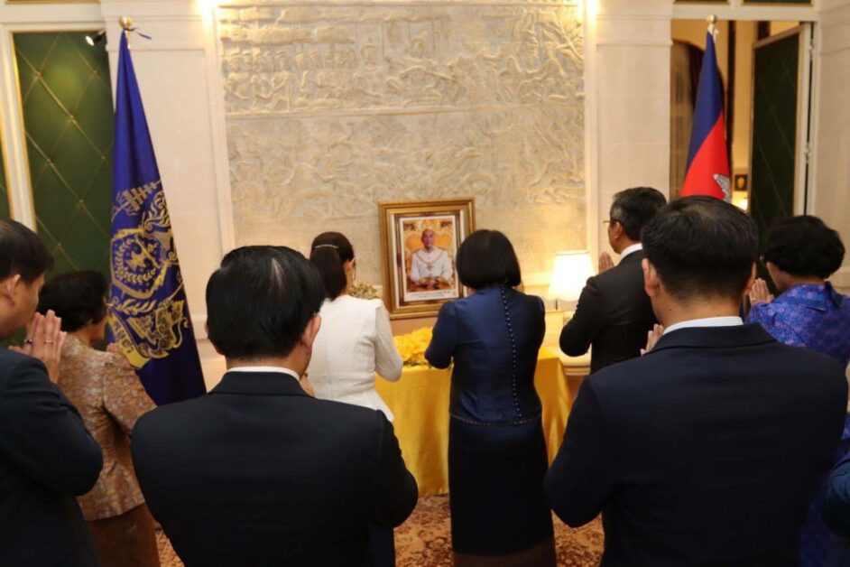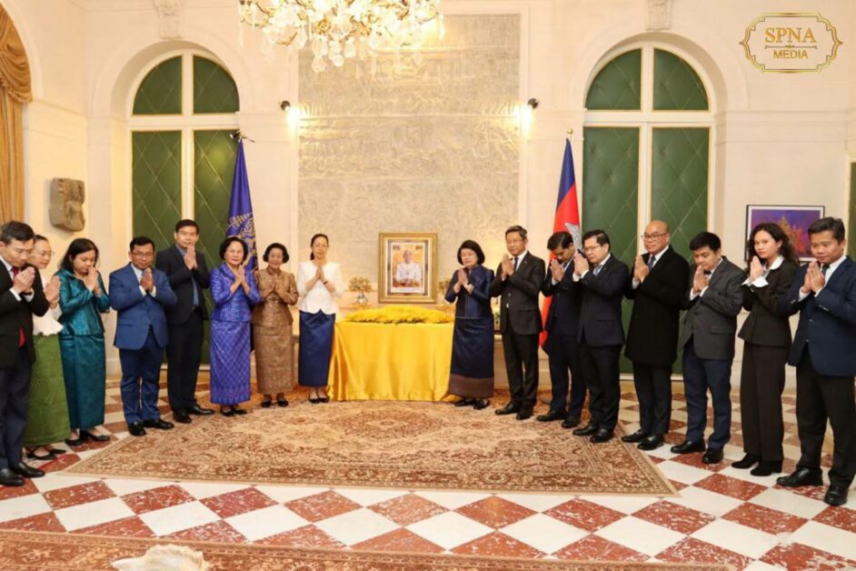 សម្តេចរដ្ឋសភាធិបតី ឃួន សុដារី ដឹកនាំគណៈប្រតិភូរដ្ឋសភា ថ្វាយព្រះពរ ព្រះមហាក្សត្រ នរោត្តម សីហមុនី ក្នុងឱកាសគម្រប់ខួប ២១ ព្រះវស្សា នៃការគ្រងរាជ្យ នៅស្ថានទូតកម្ពុជាប្រចាំប្រទេសបារាំង