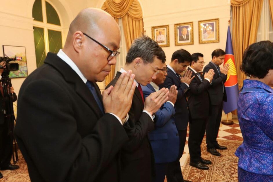 សូមព្រះបរមរាជានុញ្ញាតជាថ្មីម្តងទៀត ធ្វើអភិវន្ទនកិច្ចថ្វាយនូវព្រះរាជសព្ទសាធុការពរជ័យ បវរមហាប្រសើរ និងសូមលើកហត្ថប្រណមបួងសួងដល់គុណបុណ្យព្រះរតនត្រ័យកែវទាំងបី វត្ថុស័ក្តិសិទ្ធិ ទាំងអស់ក្នុងលោក មហិទ្ធិឫទ្ធិបុណ្យបារមីនៃទេវតាថែរក្សាព្រះមហាស្វេតច្ឆត្រ បុណ្យបារមីនៃដួងព្រះវិញ្ញាណក្ខន្ធ អតីតព្រះមហាក្សត្រ ព្រះមហាក្សត្រីយានីខ្មែរគ្រប់ព្រះអង្គ និងដួងព្រះវិញ្ញាណក្ខន្ធ ព្រះបរមរតនកោដ្ឋ សូមជួយបីបាច់ថែរក្សាអភិបាលប្រោះព្រំ ព្រះសព្ទសាធុការពរជ័យគ្រប់ប្រការថ្វាយ ព្រះករុណាជាអម្ចាស់ ទ្រង់ប្រកបដោយ ព្រះរាជសុខភាពល្អបរិបូរណ៍ ព្រះកាយពលមាំមួនខ្លាំងក្លា ព្រះបញ្ញាញាណឈ្លាសវៃ និងព្រះជន្មាយុយឺនយូរជាងរយព្រះវស្សា ដើម្បីគង់ប្រថាប់ក្នុងព្រះបរមសិរីរាជសម្បត្តិជាម្លប់ដ៏ត្រជាក់ត្រជំ សុខដុមរមនារបស់មាតុភូមិកម្ពុជា និងប្រជារាស្ត្រខ្មែរគ្រប់រូបតរៀងទៅ៕