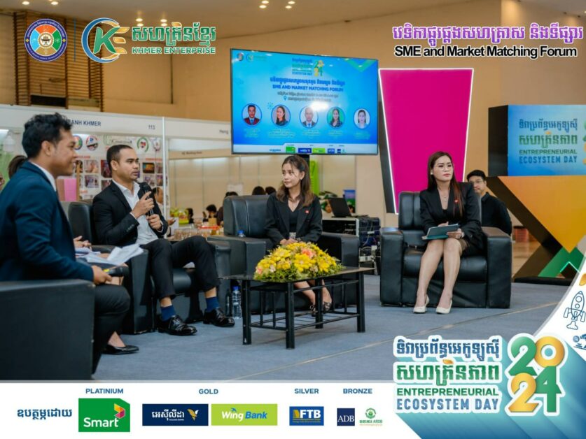 សហគ្រិនខ្មែរ បានរៀបចំវេទិកាផ្គូរផ្គងសហគ្រាសធុនតូចនិងមធ្យម និងទីផ្សារ ក្នុងគោលដៅពង្រីកលទ្ធភាពចូលទៅកាន់ទីផ្សារសម្រាប់ផលិតផលកម្ពុជា។ វេទិកានេះជាផ្នែកមួយនៃទិវាប្រព័ន្ធអេកូឡូស៊ីសហគ្រិនភាព ឆ្នាំ២០២៤ ដែលធ្វើឡើងនៅថ្ងៃទី២៤-២៥ ខែវិច្ឆិកា ឆ្នាំ២០២៤ ដោយផ្តល់ឱកាសសម្រាប់ការតាំងបង្ហាញផលិតផល, ការប្រកួតប្រជែងគំនិតធុរកិច្ច, និងជំនួបរវាងដៃគូពាក់ព័ន្ធ ដើម្បីពិភាក្សា និងចែករំលែកបទពិសោធន៍ សំដៅពង្រឹងប្រព័ន្ធអេកូឡូស៊ីសហគ្រិនភាពនៅកម្ពុជា។