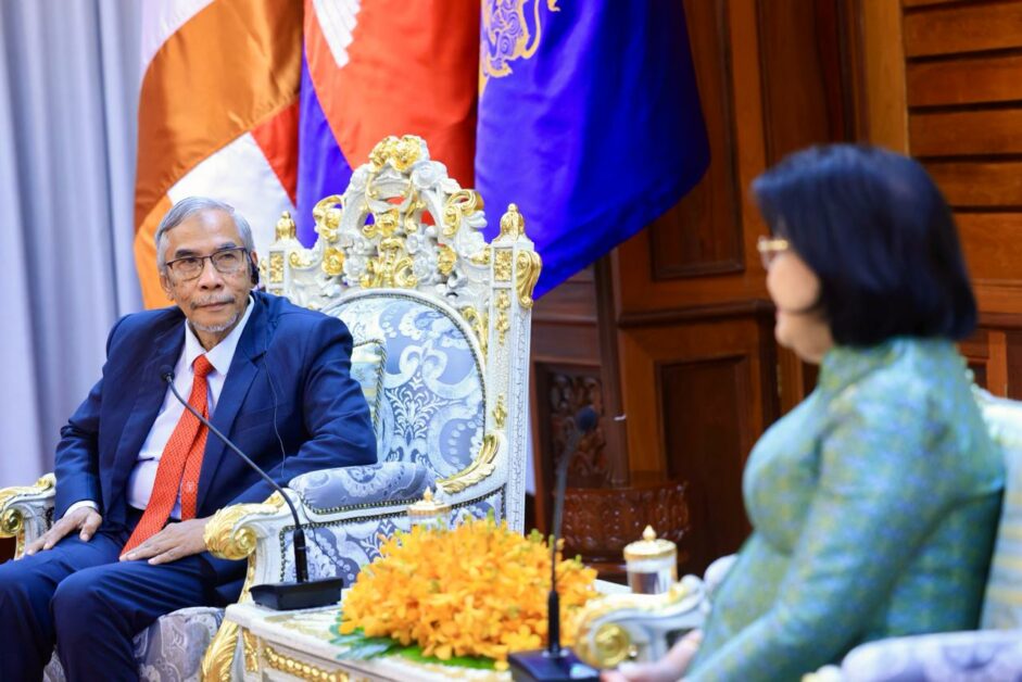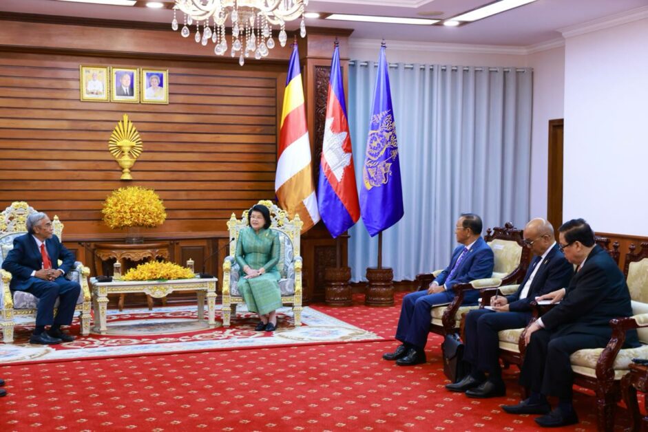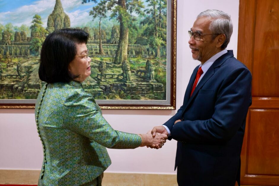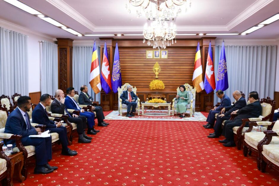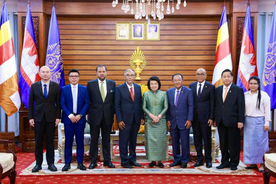 សម្តេចមហារដ្ឋសភាធិការធិបតី ឃួន សុដារី ប្រធានរដ្ឋសភានៃព្រះរាជាណាចក្រកម្ពុជា បានទទួលជួបពិភាក្សាការងារជាមួយ គណៈប្រតិភូសហព័ន្ធសភាសន្ដិភាពពិភពលោកនៃសភាម៉ាឡេស៊ី (PFWP) ដឹកនាំដោយឯកឧត្តមបណ្ឌិត ដាតុក វីរ៉ា ម៉ុដ ហាតា ប៊ីន អឹមឌី រ៉ាមលី សមាជិកព្រឹទ្ធសភាម៉ាឡេស៊ី នៅព្រឹកថ្ងៃទី៣ ខែតុលា ឆ្នាំ២០២៥ នៅវិមានរដ្ឋសភា ក្នុងពេលដែលគណៈប្រតិភូបំពេញទស្សនកិច្ចនៅកម្ពុជា។