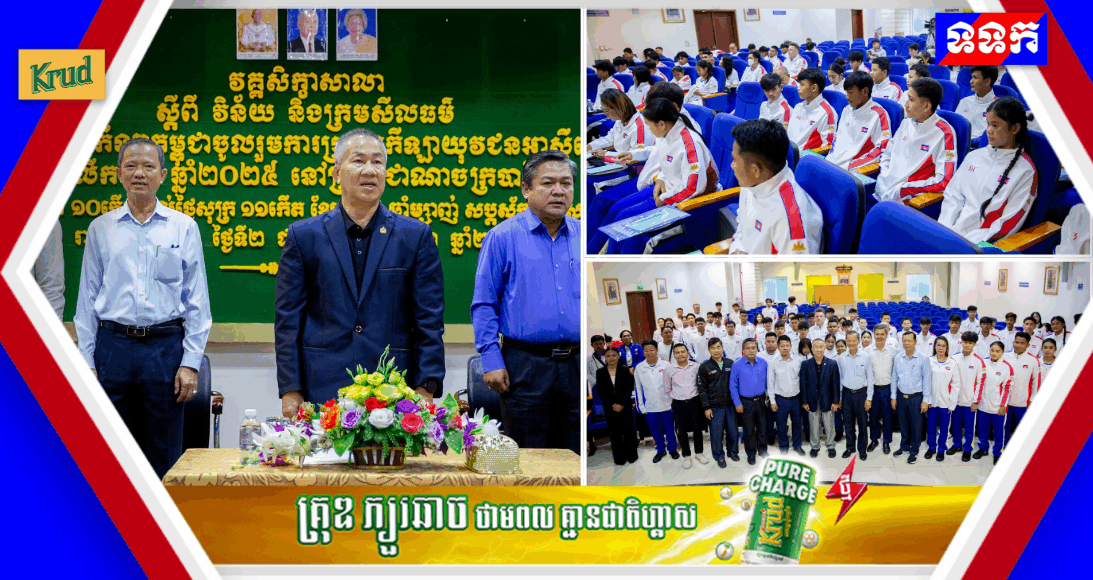 សិក្ខាកាម ចំនួន១២៨នាក់ រួមមាន គ្រូបង្វឹក គ្រូជំនួយ កីឡាករ កីឡាការិនី ក្រុមកីឡាជម្រើសជាតិថ្នាល ដែលត្រៀមចូលរួម ប្រកួតកីឡា យុវជនអាស៊ី លើកទី៣ ឆ្នាំ២០២៥ នៅព្រះរាជាណាចក្របារ៉ែន ទទួលបានការសិក្សារយៈពេល២ថ្ងៃ នៃវគ្គស្តីពី “វិន័យ និងក្រមសីលធម៌” មុនចូលរួមប្រកួតកីឡាយុវជន អាស៊ីលើកទី៣ នៅព្រះរាជាណាចក្រប៉ារ៉ែន ។